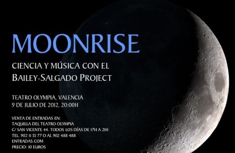 Moonrise con Tom Bailey y José Francisco Salgado Moonrise, el espectáculo audiovisual en el Teatro Olympia ¿Cuándo? Fecha Del Monday, 09 de July del 2012 al Monday, 09 de July del 2012 HORA 01:00 h ¿Dónde? LUGAR Teatro Olympia C/ San Vicente Martir, 44 Ver ficha Moonrise es un espectáculo audiovisual formado por el músico y compositor Tom Bailey y por el astrónomo y visualizador del planetario José Francisco Salgado. En este trabajo, que se proyectará el 9 de julio en el Teatro Olympia, se combinan imagen y sonido para comunicar ciencia a través del arte. El espectador aprenderá más sobre el planeta y su universo, con proyecciones de video de alta definición, con música en directo y grabada. El resultado es una obra artística con una fusión de los componentes musical y visual, de gran atractivo para el público. Artículos relacionados Cine de verano 2012 en Valencia Programación Dansa Valencia 2012