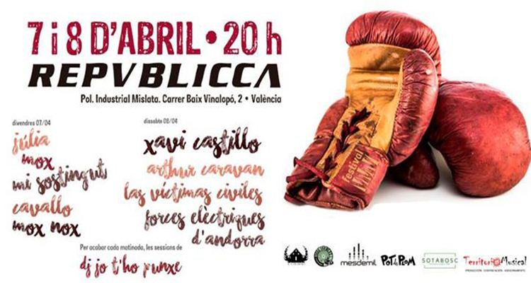 Festival de l'horta Turia L’horta de València cada vez más cerca con Cerveza Turia ver más Programa de la Semana Santa Marinera 2019 Programa oficial de la Semana Santa Marinera de Valencia del 11 al 21 de abril de 2019 ver más Cena con Showroom en Apicius Gastronomía y joyería en una misma velada ver más 27 palacios de la Comunitat abren sus puertas a la ciudadanía “Palaus Transparents” es una iniciativa de la Generalitat Valenciana en la que, a partir del 3 de abril, se podrán visitar 27 edificios patrimoniales de gran valor en València, Alicante y Castellón ver más Sesiones Acústicas Música en directo cada miércoles en Tinto Fino Ultramarino Valencia ver más El Modernismo en Valencia A principios del siglo XX Valencia se impregnó de un nuevo movimiento: El Modernismo. ver más Los mejores bares de tapas de València Aquí os traemos los lugares en Valencia donde vas a poder degustar las mejores tapas de la ciudad ver más Super sábados con niños en Valencia Los sábados, en el Centro Comercial El Saler, divertirse en familia tiene premio ver más Concierto del grupo Novedades Carminha en la sala WahWah de Valencia El viernes 7 de abril tendrá lugar, en la Sala Wah Wah de Valencia, el concierto de la banda Novedades Carminha ver más Valencia Cuina Oberta 2023 Del 11 al 21 de abril se celebra la XXIX edición de Cuina Oberta con más de 50 restaurantes de València y provincia ver más Festival Urbano en Valencia El festival Distrito 008 vuelve en 2018 con su VIII edición dispuesto a dinamizar Extramurs del día 12 al 22 de abril ver más Jam de Comedia Risa y mucha diversión con la Comedy Jam en Delorean Lounge Ruzafa ver más Feria Gastrocultural Mexicana en Valencia Del día 5 al 16 de abril, el edificio Veles y Vents de Valencia acogerá la 1ª Feria Gastrocultural Mexicana ver más Cabaret en el Teatro Olympia El musical Cabaret llega al Teatro Olympia de Valencia. ver más Festival de Danza en Valencia Desde el día 6 de abril hasta el día 9 se podrá disfrutar, en cuatro teatros de la ciudad, el festival Dansa València ver más 12 ª Guerra de almohadas en Valencia La Plaza de la Virgen es el campo de batalla de una guerra de almohadas el sábado 6 de abril a partir de las 18:30h ver más Chefs de Yllana en Rambleta Una deliciosa comedia llega a Rambleta de la mano de Yllana ver más Festival de Música Contemporánea Ensems Del 14 de abril al 12 de mayo se celebra la 41ª edición del Festival de Música Contemporánea Ensems ver más Monólogo de Miki Dkai en Casino Cirsa Miki Dkai vuelve a Casino Cirsa Valencia con su humor arrollador ver más El Festival València Música Valenta (FVMV) en la Sala República Los días 7 y 8 de abril tendrá lugar en la Sala Repvblicca de Valencia el Festival València Música Valenta ver más Domingo de Ramos El Domingo de Ramos se conmemora el día en que Jesucristo entró en Jerusalén ver más Exposición 'Inventant la tradició' en Museu Valencià d'Etnología El Museu Valencià d’Etnología realiza un recorrido a través de la indumentaria tradicional valenciana hasta el 30 de abril de 2017 ver más