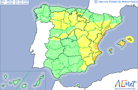 Alerta naranja por tormentas en el litoral Mediterráneo Aguaceros fuertes durante al menos 24 horas en el litoral de la Comunidad Valenciana El litoral de la Comunitat Valenciana está este lunes en alerta naranja, debido al riesgo importante por fuertes lluvias que irán acompañadas de aparato eléctrico, granizos ocasionales y fuertes rachas de viento en el litoral Mediterráneo. Desde la Agencia Estatal de Meteorología (Aemet) se ha alertado sobre las intensas precipitaciones que se producirán en la zona mediterránea desde este domingo hasta el martes. Hoy lunes será el día de mayor precipitaciones. Es muy probable que la mayor intensidad de precipitación corresponda al litoral de la Comunidad Valenciana, sur de Tarragona, Ibiza y Mallorca, con chubascos muy fuertes (40 mm/h) y que incluso podrán alcanzar los 100 mm en 12 horas en puntos de los litorales de Castelló y de Tarragona. Es muy probable que la mayor intensidad de precipitación corresponda al litoral de la Comunidad Valenciana, sur de Tarragona, Ibiza y Mallorca, con chubascos muy fuertes (40 mm/h) y que incluso podrán alcanzar los 100 mm en 12 horas en puntos de los litorales de Castelló y de Tarragona. El martes 23, el temporal estará ya más debilitado y se reducirán las precipitaciones, aunque es probable que todavía se produzcan chubascos y tormentas fuertes en Baleares y en el noreste e interior del tercio norte peninsular, correspondiendo la mayor intensidad al litoral de Tarragona. Los chubascos y tormentas fuertes también afectarán a las zonas marítimas del Mediterráneo, provocando mal estado de la mar tanto en zonas costeras como en zonas de alta mar. La Aemet prevé que esta situación finalice la noche del martes al miércoles.