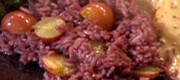 Arroz con vino tinto de Monastrell Prepara un arroz diferente paso a paso Arroz al vino. Suena bien y es otra forma de preparar este cereal valenciano. La receta la hemos sacado de Gastrónoma, la Feria de la Restauración que se celebrará en Feria Valencia. ¿Qué necesitas? Toma nota: 30 gramos de arroz de senia. 10 gramos de sofrito (cebolla radiccio). 75 gramos caldo de carnes de caza. 50 gramos de vino tinto de Monastrell. 8-10 unidades de uvas frescas de Monastrell. 10 gramos queso de oveja curado. 10 gramos de aceite de arbequina. Prepáralo a tu gusto. Marida con vinos de la tierra. Y si quieres, también puedes acabar la cena con una mistela y peras al vino. Queso de oveja Guirra