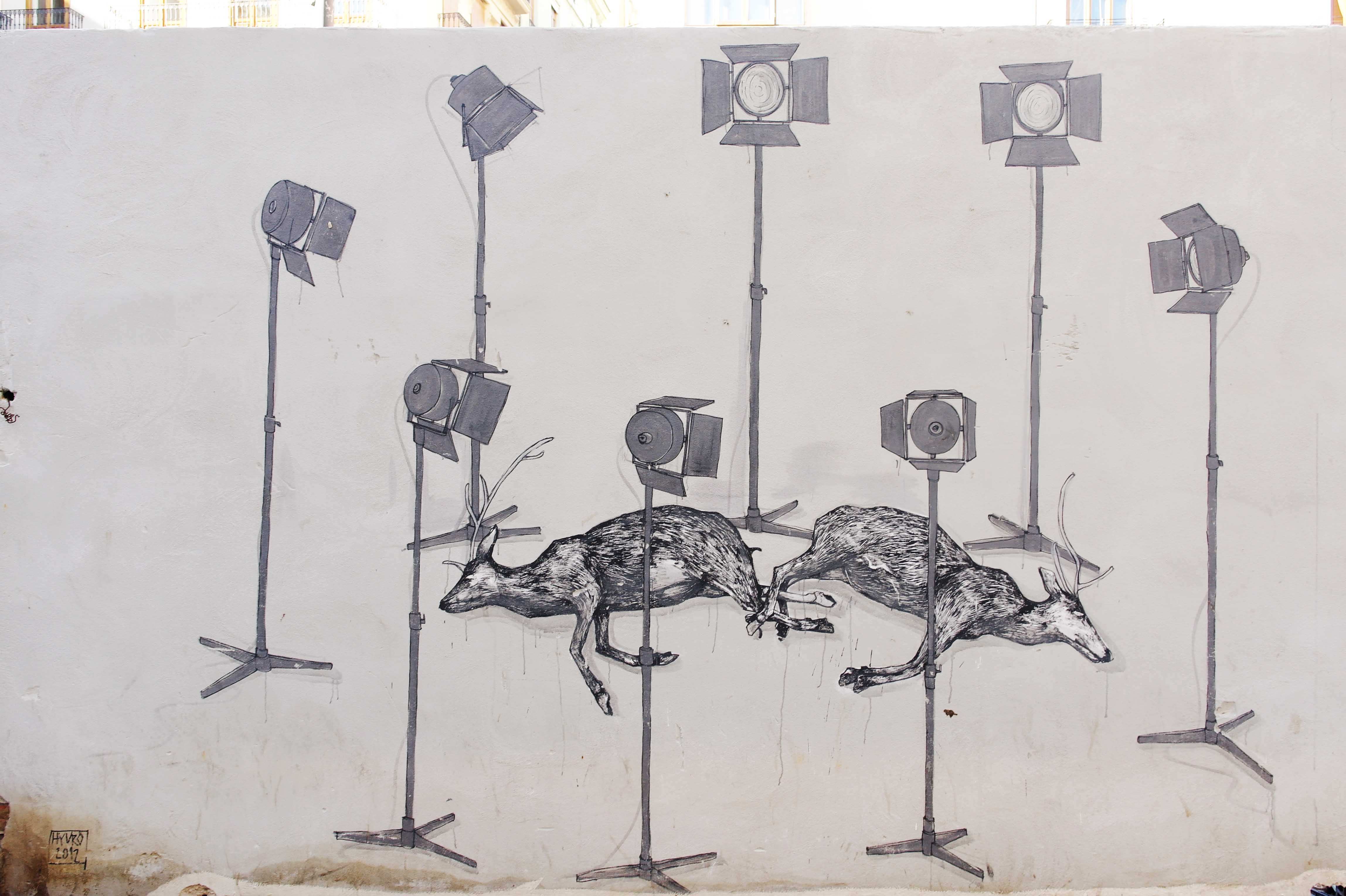 Arte urbano en Valencia Conoce el arte callejero de Valencia Si has pensado en visitar Valencia, no sabes qué hacer en Valencia y buscas una ruta en Valencia diferente, te ofrecemos una ruta de Street Art en Valencia. En la ruta de arte urbano de Valencia podrás apreciar murales y graffitis de un buen número de artistas urbanos que han convertido la ciudad de Valencia en un gran museo al aire libre. Street Art Valencia – Free Tour Ruta de Street Art en Valencia Nuestra ruta de arte urbano en Valencia da comienzo en la Calle Peydro en dirección hacia la Plaza de la Merced, muy cerca de la Plaza del Ayuntamiento de Valencia, en esta calle podemos encontrar murales graffiti de Hyuro y Escif. Hyuro es una artista nacida en Argentina que actualmente reside en Valencia, su seudónimo proviene de la unión de su nombre y su apellido, y Escif es el mayor representante del Street art en Valencia y en muchos círculos se le conoce como el Banksey Español. Además de estos dos magníficos artistas otros muchos han dejado su huella en las persianas de los locales que aquí se encuentran, una forma de arte efímero que solamente puede disfrutarse fuera de horario comercial. La obra más reconocible en esta primera etapa del recorrido es El Furgón Policial de Escif. Esta obra pertenece a una serie de murales, expuestos en distintas zonas de la ciudad y que diseñó para denunciar la brutalidad policial, la relación de esta con la política y así dar voz a las protestas ciudadanas. Continuando por la Calle Peydro, llegarás a la Plaza Merced, rodeando la Plaza podrás encontrar varias muestras de Street art en Valencia, entre ellas resaltan, Austeridad de Escif, obra que trata sobre los obstáculos que la austeridad impone a la ciudadanía. Mujeres sosteniendo y siendo parte de la ciudad, este magnífico graffiti en tonos grises, sello de identidad en la obra de Hyuro, nos invita a reflexiona sobre el peso que representa vivir en una ciudad y la complejidad de integrarse en la sociedad y por último también creación de esta artista, la obra Maltrato animal, en este mural vemos como se rodea de focos a unos ciervos malheridos, todo el mundo puede verlos como si de un espectáculo se tratara pero nadie trata de ayudarlos. Saliendo de la Plaza de la Merced por la Calle Calabazas aparece una jauría de lobos atacando un taxi, mural urbano que realizaron en colaboración Hyuro y Escif. Esta pieza de arte callejero en Valencia muestra la imagen de dos automóviles idénticos y rodeados por una jauría de lobos. Una curiosa y enigmática obra. Continuando en la Calle Calabazas podrás visitar el Mercado Central, la Lonja de la seda y la Iglesia de los Santos Juanes, un zona inmejorable para disfrutar de un desayuno, una merienda o una comida. Cruzando la Avenida María Cristina y atravesando la Calle del Trench encontrarás a tu derecha la Plaza Redonda y a tu izquierda la Plaza Lope de Vega, lugar en el que hallarás una pequeña casa con la fachada en punto de cruz, una curiosa iniciativa conocida como ArquiCostura que implica la unión entre la arquitectura y la costura Valenciana. Arquicostura pretende ser una reflexión sobre materiales, técnicas y representaciones que tienen como finalidad mezclar recursos de ambas disciplinas, creando fachadas únicas. Siguiendo la ruta de Street art hasta la calle Numancia, se pueden observar varias piezas de Street art en Valencia mucho más coloridas y luminosas que las pintadas por Hyuro y Escif. El recorrido sigue en la Calle de la Estameñeria vieja donde encontrarás varios graffitis de llamativos colores y con cierto toque abstracto de Esik, un graffitero valenciano que empezó a llenar de color las calles a mediados de los 90. Continuando en la Calle de la Purísima y más tarde en la Calle Calatrava girar a la izquierda hacia la Calle de los valencianos podrás admirar algunas creaciones del artista Valenciano Cere y de Julieta XLF, integrantes ambos del grupo XLF (Por La Face), este grupo, ha aportado sus obras de manera desinteresada a la ciudad. La formación lleva doce años en marcha y sus murales muestran cómo, a lo largo de todo este tiempo, han aprendido a integrar sus estilos para crear auténticas obras maestras del arte urbano en Valencia. En el caso de Julieta XLF no le haría falta dejar su firma, sus obras son fáciles de reconocer, sus dibujos cuentan con cierto aire japonés, y sus murales coloristas llenos de animales fantásticos, niñas dulces, plantas y algún arcoíris son tan característicos que hablan de ella por sí solos, por el contrario, las obras de Cere son grisáceas, más sencillas en apariencía y siempre con un mensaje reivindicativo. La siguiente parada es la Plaza del Tossal, a la que se llega atravesando la Calle de Alvarez, hasta llegar a la Calle Caballeros donde se debe girar a la izquierda para llegar a la Plaza del Tossal. Esta plaza situada en pleno Barrio del Carmen es un punto de encuentro donde se esconden varios impresionantes murales de arte urbano en Valencia. A la izquierda podrás ver El coche, una sencilla representación de un coche precipitándose desde la azotea del edificio, una clara obra de Escif y a la derecha una representación de Moisés creado por del artista italiano Blu. Al otro extremo de esta plaza destaca una obra abstracta Stop War Victim’s Wall de Fasim, un homenaje a las víctimas de la guerra, con cierta influencia del Guernica de Pablo Picasso. Volviendo a la Calle Caballeros y atravesando la Plaza de San Jaime, entrarás la Calle Alta y la Calle Baja, ambas cuentan con enormes y preciosos murales en sus edificios. En la Calle Baja, un mural urbano en el que aparece un conejo estrangulando a un pollo y a sus pies una paella, esta es una obra del artista italiano Erica Il Cane. Esta obra de arte urbano en Valencia sugiere que el pollo y el conejo luchan a muerte para decidir cuál es el mejor ingrediente para la paella valenciana, mientras a sus pies un grupo de gente en t