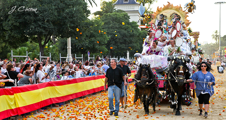 Batalla de Flores 2019 en València La Batalla de las Flores de Valencia se celebra el último domingo de julio y forma parte de los actos de la Gran Fira de València. ¡Todo un espectáculo! Durante la Feria de Julio, en València se celebra la Batalla de Flores. En la Alameda, valencianos y valencianas se congregan alrededor de una lluvia de flores. Un espectáculo lleno de carrozas, colores y pétalos. Disfruta del verano en la ciudad y descubre los mejores eventos en la agenda de València. La Batalla de las Flores se celebra durante la última semana de la Fira, concretamente este 2019 será el domingo 28 de julio a las 20.00 horas. Es el último acto de la Gran Fira de València y el más emblemático. De hecho, este acto fue introducido en 1891 por iniciativa de Pasqual Frígola, barón de Cortes de Pallás, y empezó a celebrarse en el paseo de la Alameda imitando unos combates lúdicos semejantes que se celebraban en Niza durante el Carnaval. No tardó en convertirse en el festejo más distinguido y popular; y se mantuvo como uno de los principales actos festivos y sociales de la era dorada de la antigua Fira, entre finales del siglo XIX y el primer tercio del siglo XX. La Batalla de Flores empieza con un cortejo encabezado por la Policía Municipal. Le sigue la cabalgata valenciana, con música de tabal, dulzaina, portadores de joyas y parejas a caballo vestidos a la antigua; el desfile de carrozas y una entrega de premios. Es entonces cuando empieza la batalla de flores como tal y se lanzan los claveles. Este año, más de un millón de clavellones cruzarán el cielo de València. Con este evento se dará por concluida la Feria de Julio Valencia 2019 que alberga muchas otras actividades. Desde teatro y exposiciones hasta los clásicos conciertos de Viveros. La venta de los palcos de la tradicional Batalla de Flores se realizará combinando la venta de entradas presencial con la de internet. Para garantizar opciones igualitarias, el Ayuntamiento ha gestionado la venta de entradas por internet con un sorteo previo. Consulta toda la información del sorteo de palcos para la Batalla de Flores 2019.