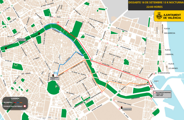 Calles cortadas por la 15K Nocturna 2021 El sábado 18 de septiembre con motivo de la carrera 15K nocturna se cerrarán algunas calles al tráfico. Consultas las calles cortadas por la carrera. 15K Nocturna: Calles cortadas La 15 K Nocturna se celebra este sábado 18 de septiembre a las 22:00h. Si quieres saber por dónde pasará la carrera, puedes ver su recorrido aquí. Por otra parte, si quieres saber por dónde podrás circular, aquí te dejamos un mapa con las calles cortadas durante la carrera. El sábado 18 de septiembre a las 16:00h comenzará el montaje de la carrera que conllevará el cierre de algunas de las calles de la ciudad hasta la 01:30h de la madrugada. En ese sentido, se ha establecido un amplio dispositivo policial y de voluntarios a lo largo de todo el circuito garantizar el correcto desarrollo de la prueba y minimizar así el impacto en la ciudadanía. La salida de la carrera se realizará en la Avenida del Ingeniero Manuel Soto a las 22:00h y desde las 16:00h se cortará al tráfico para poder preparar el montaje del inicio de la 15K Nocturna. El cierre al tráfico tendrás lugar entre la rotonda de la Marina Sur y la calle Joan Verdeguer. Respecto a la zona de meta, la calle se cortará a partir de las 19:00h en Joan Verdeguer a la altura del Ingeniero Manuel Soto.