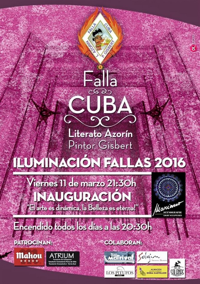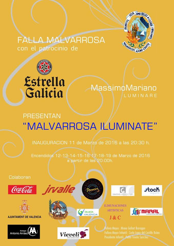 Calles Iluminadas 2016 Descubre la cara más iluminada de las Fallas 2016 Consulta toda la información sobre las Calles iluminadas en Fallas 2017, ¡cada año se superan! Como cada año, son varias las comisiones que compiten por tener la iluminación más llamativa de todas las Fallas 2016. Descubre todo el Programa de las Fallas 2016 El encendido de luces de fallas se llevará a cabo el Viernes 11 de marzo de 2016. Las calles de la ciudad resplandecen, ya que cuatro de las fallas más importantes de Valencia realizan su encendido de luces oficial el mismo día, son: Falla Avenida Malvarrosa-A.Ponz-Cavite -> ( Avda. Malvarrosa, 92 con C/ Isla Fuenteventura). Falla Sueca-Literato Azorín -> (Cruce de C/ Literato Azorín con C/ Sueca). Falla Cuba-Literato Azorín ->(Cruce C/ Cuba con C/ Literato Azorín). Falla Cuba-Puerto Rico -> (Cruce C/ Cuba con C/ Puerto Rico). No obstante, pese a que estas cuatro fallas sean las que más flashes acaparen por estar en la ”Categoría A” de calles iluminadas, hay muchas otras que también apuestan por el espectáculo lumínico en fallas. Es el caso de las fallas Peris y Valero-Cuba, Centelles, La Real y Tomasos que este año presentarán el alumbrado de forma conjunta (El próximo Jueves 10 de marzo a partir de las 20.30 horas). Se trata de uno de los actos falleros más visitados por la población y que año tras año consigue abarrotar las calles de Valencia. Ya puedes consultar el listado de premios de calles iluminadas 2016. Conoce también los horarios de los encendidos de luces en Valencia para los próximos días. Falla Avenida Malvarrosa-A.Ponz-Cavite. Lema: ”Malvarrosa Iluminate”. El proyecto está inspirado en uno de los ejemplos arquitectónicos más reconocidos del Renacimiento italiano: Las torres del duomo de Florencia. Artista: Massimo Mariano. Falla Sueca-Literato Azorín. Lema: “The illusion of light” una apuesta con guiños circenses, magia e ilusionismo. Artista: Giuseppe De Cagna. Falla Cuba-Literato Azorín. Lema: “El arte es dinámica, la Belleza es eterna!” Un repaso de las obras arquitectónicas del hombre desde sus origines, pasando por el presente y presentando un posible futuro. Artista: MarianoLight Falla Cuba-Puerto Rico. Autor: Iluminaciones Ximenez. ¡Disfruta de este espectáculo mpresionante que contiene la máxima esencia del ambiente fallero! * Atención. Los horarios podrán estar sujetos a modificaciones por imprevistos.