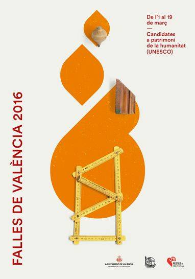 Los carteles de Fallas 2016 están salpicados de elementos provenientes de la carpintería, evocando el origen histórico de las Fallas, que se atribuye a que en marzo, con el inicio de la temporada de primavera, el gremio de carpinteros hacía limpieza de sus talleres y sacaba los restos a la calle para quemarlos. Estos elementos se combinan en los carteles con dibujos que simbolizan escenas típicamente falleras: la mujer fallera, la música tradicional, el fuego y el humor.