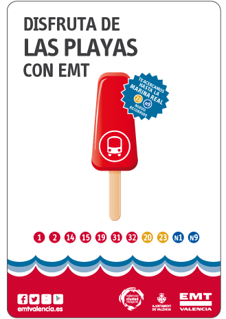 EMT comienza la campaña de playas La EMT ofrecerá 7,8 millones de plazas a través de 11 líneas para acercar a valencianos y turitas a las playas de la ciudad Comienza el Dispositivo Especial de Verano de la Empresa Municipal de Transportes de Valencia (EMT) con el objetivo de acercar a valencianos y turistas a las playas de Valencia. Para ello se amplía y ajusta el servicio que durante todo el año ya se ofrece con 9 líneas regulares. EMT Valencia ofrecerá durante los meses de verano 7,8 millones de plazas a través de las líneas regulares 1, 2, 14, 15, 19, 31, 32 y las nocturnas N1 y N9. Además entran en funcionamiento 2 líneas especiales de verano (20 y 23). Durante las 2 primeras semanas las líneas especiales 20 y 23 sólo funcionaran los fines de semana y a partir del sábado 14 de Junio darán servicio diariamente hasta el domingo 31 de Agosto. Adicionalmente, a partir del 14 de Junio, la línea 2 ampliará temporalmente su recorrido por Doctor Lluch y calle Reina mejorando el servicio en las principales paradas del Paseo Marítimo, que son las ubicadas al inicio del paseo, junto al Balneario de la Arenas, y en su parte final, junto a la rotonda de la calle Mendizábal. Con este fin, EMT Valencia incrementará el servicio de la línea 2 que ofertará diariamente casi 17.000 plazas y una frecuencia en laborables de en torno a los 8 minutos. Se trata, de conectar cualquier punto de la ciudad con las principales playas de Valencia: Playa de las Arenas, Cabanyal – Cañameral, Malvarrosa (líneas 1, 2, 19, 20, 23, 31, 32, N1 y N9), Pinedo (líneas 14 y 15) y también con la playa de la Patacona (línea 31), situada en el municipio de Alboraya. Novedades La principal consiste en la modificación de los recorridos de las líneas especial de verano 23 y de la N9 que en ambos casos, mejora y potencia la conexión entre la Marina Real, la Ciudad de las Artes y las Ciencias, el paseo Marítimo y el barrio de Nazaret con el resto de la ciudad. En el caso de la línea 23, esta conexión podrá ser disfrutada también por los miles de turistas que diariamente llegan al Puerto de Valencia a bordo de grandes cruceros. La modificación de recorrido de la línea 23 que, como el resto del Servicio de Playas, se iniciará los dos primeros fines de semana, para pasar a ser diario desde el 14 junio hasta el 31 de agosto, se centra en: Dirección Platges: – 3 nuevas paradas: Estació Marítima – Pont de les Drassanes Estació Marítima – Autoritat Portuària Marina Real – Passeig Neptú – 1 parada suprimida: Marcos Sopena – Port · Dirección Natzaret/Creu Coberta: -3 nuevas paradas: Marina Real Estació Marítima – Autoritat Portuària Estació Marítima – Pont de les Drassanes – 4 paradas suprimidas: Dr. Marcos Sopena – Armada Espanyola Dr. J.J. Domine – Port Manuel Soto “Enginyer” – Estació Manuel Soto “Enginyer” – Comandància Marina En el caso de la N9, el cambio se centra en la incorporación de una nueva parada cuya denominación será “Marcos Sopena-Marina Real” que conecta de forma directa el centro de la ciudad con el entorno de la Marina Real y zonas de ocio del Paseo Marítimo. Toda la información sobre las mejoras de recorrido de ambas líneas, se podrá consultar desde unos días antes en todas las paradas, canal de TV a bordo del bus (Canal Bussi), página web, en la aplicación oficial de EMT para smartphones, a través de Twitter y Facebook y, por supuesto, en la Oficina de Atención al Cliente (96.315.85.15). Disfruta de las playas con EMT Para contribuir a difundir toda la oferta de servicio y animar a ciudadanos y turistas a moverse en autobús durante el verano, EMT pondrá en marcha una campaña especial de información bajo el lema: “Disfruta de las playas con EMT” cuyo objetivo es promocionar el servicio de la red de playas con especial relevancia en el caso de las líneas 23 y N9 que modifican su recorrido. EMT ha diseñado un plano explicativo y simple del servicio a las playas que próximamente se colocará en todas las marquesinas de la red, a la vez se habilitará un espacio único en la página web dónde cualquier persona podrá consultar y descargarse toda la información sobre el Dispositivo Especial. Esta información también estará actualizada en la aplicación para smartphones y que se comunicará a través de Twitter y Facebook. Además, de cara al inicio del servicio diario el próximo 14 de Junio, se pondrán en marcha acciones especiales de cercanía y se repartirá información personalizada en hoteles, hostels, Oficinas de Turismo, Puntos de Venta y locales de ocio. También se ha diseñado una señalización especial en el entorno del Paseo Marítimo para facilitar y fomentar el uso del autobús público este verano.