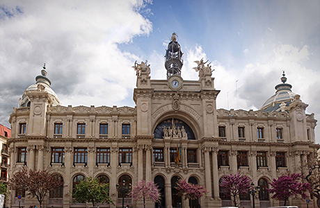 The Valencia Post Office, in Spanish “Edificio de Correos“, is popularly known as the “Palacio de Comunicaciones” and was built by architect Miguel Angel Navarro in 1922. The five special statues at the building’s entrance give the building distinction. Each statue symbolizes an allegory of the communication world. Learn more about the Valencia Post Office!