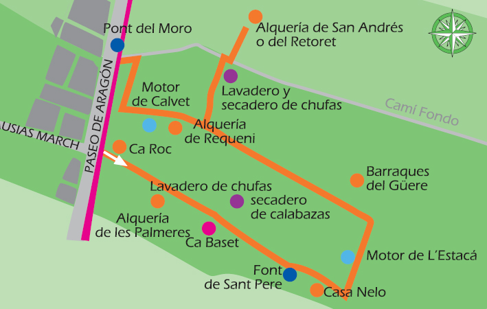Leave from Ca Roc (Paseo de Aragón, in the area of Ausias March) to get to Pont del Moro (Paseo de Aragón). The tour can be done in in one hour and is not very difficult. You can either do this tour by foot, by riding a bike and even by riding a horse.