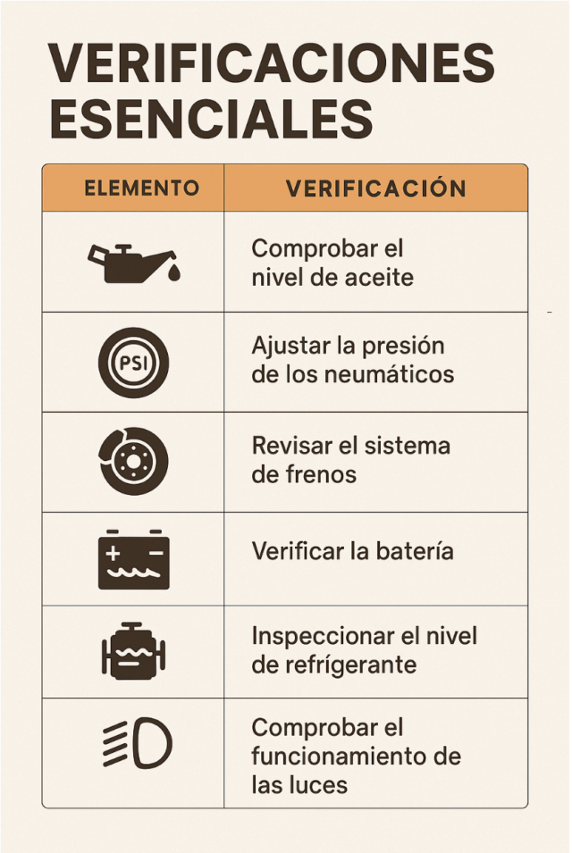 ¿Está tu coche preparado para las vacaciones de verano? ¿Planeas un viaje largo en coche este verano? Preparar correctamente tu vehículo es fundamental para evitar averías inesperadas y disfrutar de un viaje seguro. Según las estadísticas de averías de vehículos en verano por RACE, las asistencias en carretera aumentan un 12,5% durante los meses estivales, con julio registrando el mayor incremento de fallos mecánicos debido a las altas temperaturas. Los tres problemas más frecuentes que causan averías en verano son los fallos en la batería, problemas con neumáticos y averías del motor. Una preparación adecuada puede prevenir muchos de estos inconvenientes y convertir tu escapada en una experiencia memorable por los motivos correctos. Comprobaciones esenciales antes del viaje Sistema de refrigeración del motor El motor es especialmente vulnerable al calor extremo. Revisa el nivel de líquido refrigerante y verifica que no haya fugas en mangueras o radiador. Las temperaturas del verano 2024 han sido particularmente exigentes para los vehículos españoles, con olas de calor que pusieron a prueba los sistemas de refrigeración. Batería y sistema eléctrico del vehículo Las altas temperaturas aceleran la degradación de la batería. Limpia los bornes y comprueba que estén bien apretados. Si tu batería tiene más de cuatro años, considera revisarla en un taller especializado antes del viaje. Neumáticos, tu conexión segura con la carretera La presión correcta es vital para la seguridad. Los neumáticos mal inflados aumentan el consumo de combustible y pueden provocar reventones peligrosos. Para un Toyota Yaris, las presiones recomendadas son: 175/65R15: 2.3 bar (delanteros) y 2.2 bar (traseros) 185/60R15: 2.3 bar (delanteros) y 2.1 bar (traseros) 195/50R16: 2.2 bar (delanteros) y 2.0 bar (traseros) Revisa también el dibujo de la banda de rodadura. Si el desgaste es irregular o la profundidad es inferior a 1.6 mm, es momento de cambiar los neumáticos. Para propietarios de Toyota Yaris que necesiten sensores de presión o neumáticos específicos, más información en el sitio web – recambioscoches.es. Sistema de frenos y dirección asistida Comprueba el nivel de líquido de frenos y presta atención a ruidos extraños al frenar. La dirección debe responder sin holguras ni vibraciones anómalas. Lista visual de verificaciones esenciales La siguiente infografía resume los seis controles fundamentales que todo conductor debe realizar antes de emprender un viaje largo. Esta lista incluye las verificaciones más importantes para evitar averías en carretera. La tabla visual presenta de forma clara los controles prioritarios: aceite del motor, presión de neumáticos (PSI), sistema de frenos, batería, nivel de refrigerante y funcionamiento de luces. Cada elemento está representado con iconos que facilitan la comprensión. Esta metodología visual ayuda a los conductores a recordar fácilmente la secuencia de comprobaciones. Tabla de comprobaciones esenciales Sistema Qué revisar Frecuencia Aceite motor Nivel y color Cada 1.000 km Neumáticos Presión y desgaste Semanal Refrigerante Nivel y fugas Mensual Batería Bornes y carga Antes del viaje Frenos Líquido y pastillas Cada 6 meses Esta tabla de mantenimiento preventivo establece las frecuencias recomendadas para cada comprobación crítica. El aceite del motor debe verificarse regularmente para garantizar una lubricación adecuada, especialmente importante durante el verano. La presión de neumáticos requiere control frecuente, ya que las variaciones afectan tanto el consumo como la seguridad. El refrigerante necesita inspección regular durante los meses cálidos, cuando los sistemas de refrigeración trabajan más intensamente. La batería debe revisarse antes de cada viaje largo, ya que las altas temperaturas afectan su rendimiento. El sistema de frenos requiere verificación periódica para mantener su eficacia. Preparativos adicionales para trayectos largos Aumenta la presión de neumáticos ligeramente cuando viajes con carga completa. Lleva un kit de herramientas básicas, incluyendo manómetro para neumáticos, cables de arranque y triángulos de emergencia. Planifica paradas cada dos horas para descansar y verificar que el motor no se sobrecaliente. En días especialmente calurosos, evita las horas centrales del día para los tramos más largos. Mantenimiento preventivo como clave del éxito Las estadísticas de averías de vehículos en verano por RACE muestran que los problemas con neumáticos aumentaron un 14,4% en comparación con otros períodos del año. Este dato subraya la importancia de mantener una presión adecuada y revisar regularmente el estado de las cubiertas. Un coche bien preparado es sinónimo de viaje exitoso. Invertir tiempo en estas comprobaciones antes de partir no solo garantiza tu seguridad, sino que puede ahorrarte costosas reparaciones en carretera y hacer que tus vacaciones sean verdaderamente relajantes. Fuentes utilizadas Real Automóvil Club de España (RACE) – Estadísticas de asistencias en carretera Agencia Estatal de Meteorología (AEMET) – Resumen climático verano 2024 Especificaciones técnicas Toyota para presiones de neumáticos