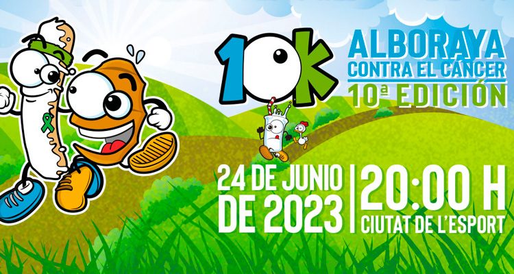 10k Alboraya Contra el Cáncer El sábado 24 de junio a las 20:00h se celebra una nueva edición de la carrera solidaria 10k Alboraya Contra el Cáncer ¿Cuándo? Fecha Del Saturday, 24 de June del 2023 al Saturday, 24 de June del 2023 HORA 20:00 h ¿Dónde? LUGAR Alboraya c/ Milagrosa, 17 Ver ficha El sábado 24 de junio se celebra la X edición de la carrera solidaria 10K Alboraya Contra el Cáncer. Esta carrera solidaria, organizada por el Ayuntamiento de Alboraya y la Junta Local contra el Cáncer de Alboraya entre otros, reunirá de nuevo a miles de atletas. Descubre todo el deporte de Valencia y no dejes de consultar la Agenda de Valencia si te preguntas qué hacer en Valencia. La carrera forma parte del circuito RUNCÁNCER, el circuito de carreras y marchas solidarias más grande de Europa. La carrera sigue un recorrido de 10 kilómetros con salida a las 20:00h desde Ciutat de l’esport. Puedes inscribirte en la carrersa solidaria en la web oficial del evento=> https://10kalboraya.com. Artículos relacionados Agenda de Deporte en Valencia 15K Nocturna FibraValencia Hacer deporte en Valencia Holi Life Valencia 2019