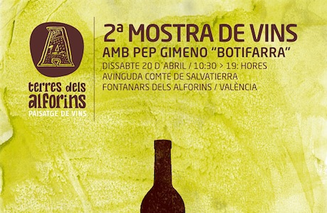 2a Mostra de vins “Terres del Alforins” Las 11 bodegas que conforman Terres dels Alforins celebrarán el sábado 20 de abril la 2ª Mostra de sus vinos en la localidad que les da nombre. ¿Cuándo? Fecha Del Saturday, 20 de April del 2013 al Saturday, 20 de April del 2013 HORA 10:30 h ¿Dónde? LUGAR Fontanars dels Alforins Fontanars dels Alforins Ver ficha Buenos vinos, buena comida y música para acompañar. Las 11 bodegas que forman la marca de reciente creación Terres dels Alforins celebrarán el próximo sábado 20 de abril la 2ª Mostra de sus propios vinos. La cita es en el corazón mismo de la tierras donde se trabajan cada año los vinos, en Fontanars dels Alforins, a partir de las 10.30 de la mañana y hasta las 7 de la tarde. En la muestra podrás degustar los vinos de todas las bodegas que engloba la denominación: Belda, Bodegas Enguera, Los Frailes, Los Pinos, Heretat dels Taverners, Rafael Cambra y Torrevellisca, de Fontanars; Celler del Roure y Clos de la Vall, de Moixent y Antonio Arráez y Cooperativa La Viña, de La Font de La Figuera; Además podrás acompañar la cata con un poco de tapeo, o comer en algunos de los restaurantes de la zona, como Casa Julio. Los tickets para degustación de 8 vinos costarán 3 euros. Por este mismo importe (3 euros) se podrá disfrutar un plato de gazpacho o un plato degustación de Julio Restaurante. La muestra contará, además, con la actuación de Pep Gimeno “el Botifarra”.