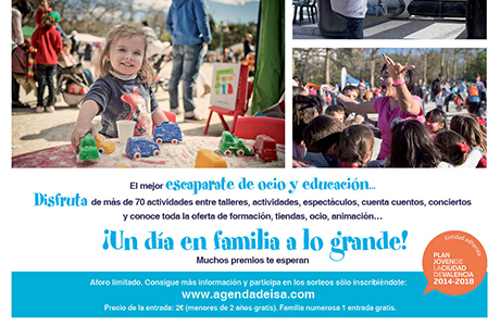 8ª Feria Familiar en Jardines de Viveros Una jornada llena de actividades familiares desde Jardines de Viveros ¿Cuándo? Fecha Del Sunday, 05 de October del 2014 al Sunday, 05 de October del 2014 HORA 01:00 h ¿Dónde? LUGAR Jardines de Viveros Calle Botánico Cavanilles 10 Ver ficha Los Jardines de Viveros de Valencia acogen una nueva edición de la Feria Familiar el domingo 5 octubre de 10:00 a 19:30 horas. Disfruta de este y de todos los eventos que se celebran en Valencia. La 8ª Feria Familiar propone un amplio abanico de actividades de educación, salud, academias, moda, animación y celebración de fiestas, cultura y ocio para las familias. Son más de 40 expositores que darán al visitante la oportunidad de participar en más de 70 actividades; exhibiciones, sorteos valorados en más de 3.000€, talleres, espectáculos y mucha, mucha diversión para toda la familia. Artículos relacionados Otoño Valencia con niños