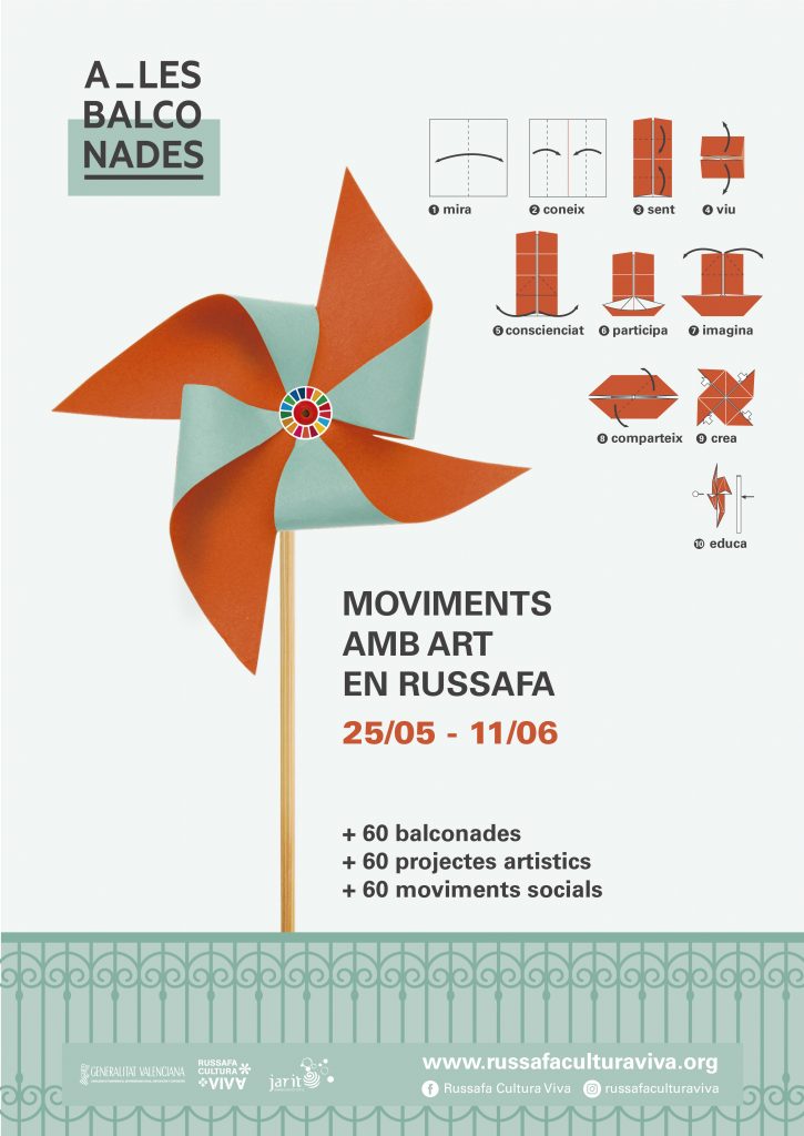 ‘A les balconades’ en Ruzafa 2017 La séptima edición de ‘A les balconades’ llega a Ruzafa del 25 de mayo al 11 de junio con arte contemporáneo reivindicativo ¿Cuándo? Fecha Del Thursday, 25 de May del 2017 al Sunday, 11 de June del 2017 HORA 12:00 h ¿Dónde? LUGAR Russafa Russafa Ver ficha La creatividad y los movimientos sociales se expresan mediante el arte urbano en el barrio de Ruzafa con una nueva edición de ‘A les Balconades 2017’. Esta acción, que repite por séptimo año, llega del 25 de mayo al 11 de junio de 2017. Si no sabes qué hacer en Valencia y quieres salir por Ruzafa, no dudes y consulta la agenda de Valencia. A les Balconades 2017, muestra las intervenciones artísticas en la barrio valenciano de Ruzafa situadas en las fachadas y balcones del barrio. Este evento acoge desde diversas actividades y talleres hasta danzas, conciertos y acciones artísticas. Esta actividad, que ya cuenta con siete ediciones, tiene como objetivo la dinamización cultural y social del barrio. Además de ser un gran escaparte del arte contemporáneo en Valencia más reivindicativo. La temática del festival la proponen los diferentes movimientos sociales que participan, mediante sus campañas y actividades, basándose en los Objetivos de Desarrollo Sostenible de la Agenda 2030 aprobada por la ONU. Asómate a Ruzafa durante esta primavera en Valencia para disfrutar del mejor arte en la calle. Programación A les Balconades! 2017 Conoce la ubicación de las actividades, las rutas y el resto del programa accediendo desde el siguiente botón. A les balconades 2017 Cartel A les balconades! Ruzafa 2017 Artículos relacionados Primavera en Valencia Salir por Ruzafa Feria alternativa de Valencia 2018 Descubre la oferta cultural de Valencia Feria Sostenible en Valencia Concerts de Vivers 2023 Exposiciones Valencia Concierto de Blaumut en Valencia Noche de San Juan 2019 Concierto de Jarabe de Palo en Valencia Dijous al Veles 2018 | Ciclo de conciertos en Valencia
