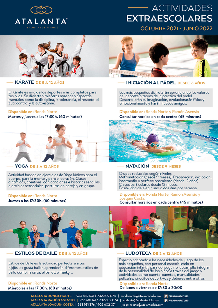 ¡La vuelta al cole ya es una realidad! Pero que no cunda el pánico, tus hijos van a estar de lo más entretenidos cuando salgan del colegio en las clases extraescolares de Atalanta Sport Club Spa. Siempre respetando las medidas de seguridad e higiene que marca sanidad para que sea una actividad segura para los niños.