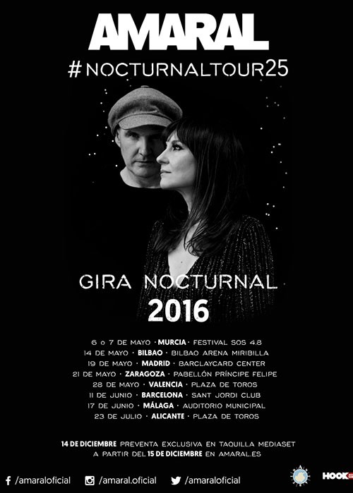Las entradas del concierto de Amaral están a la venta en la página web del grupo a partir del martes 15 de diciembre y en taquilla Mediaset a partir del lunes 14 de diciembre. Puedes adquirirlas entrando en el botón de compra de entradas que encuentras en esta publicación.