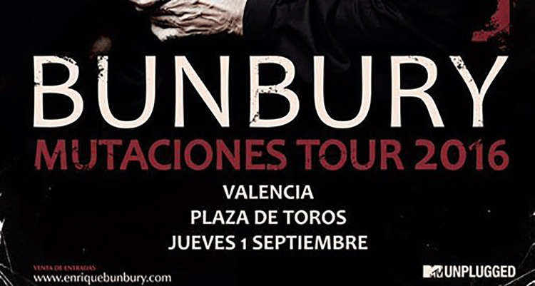 El cantante Enrique Bunbury llega a Valencia con su gira “Mutaciones Tour” el próximo 1 de septiembre. El ex vocalista de Héroes del Silencio sigue su exitoso camino en solitario y nos deleitará con los mejores temas de su discografía y una personalidad arrolladora que han hecho que se sitúe como uno de los grandes iconos del rock español.