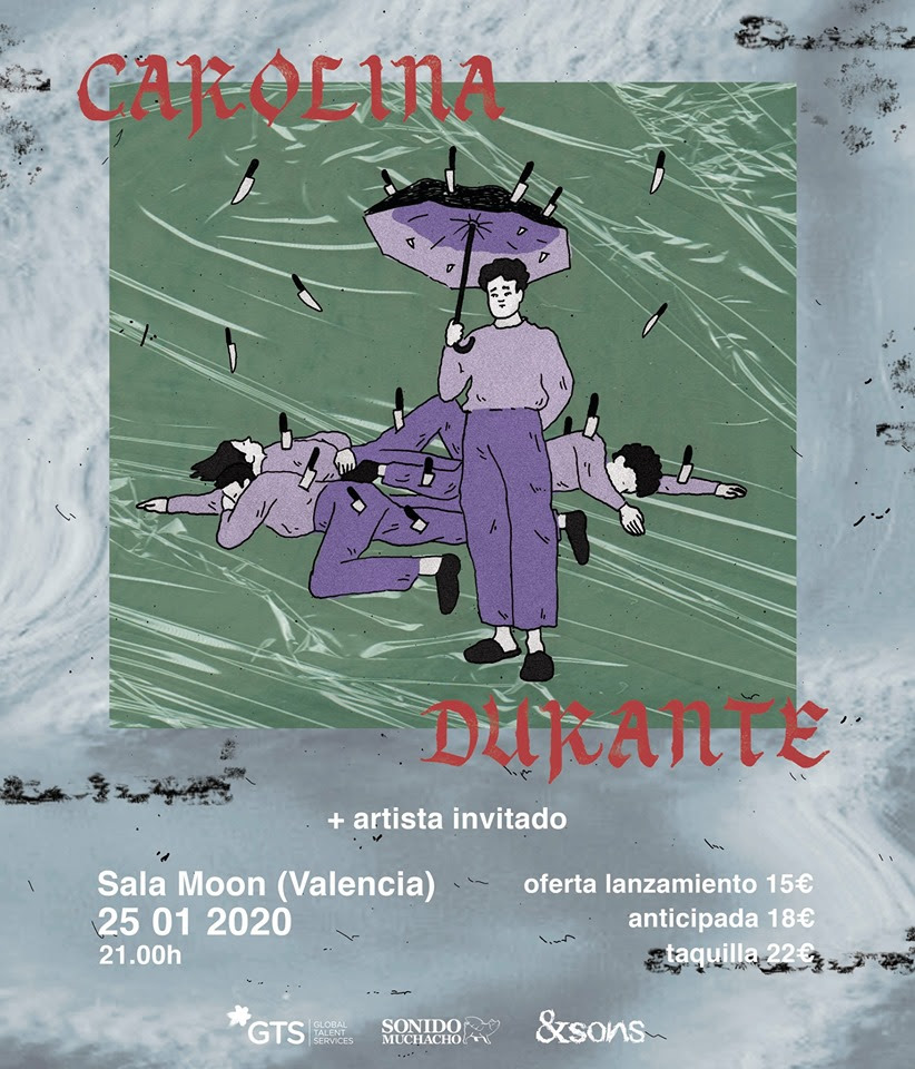 Carolina Durante en Moon Valencia Disfruta el próximo 25 de enero de la banda Carolina Durante ¿Cuándo? Fecha Del Saturday, 25 de January del 2020 al Saturday, 25 de January del 2020 HORA 21:00 h ¿Dónde? LUGAR Sala Moon San vicente, 200 Ver ficha Carolina Durante visitará por primera vez València. Esta banda madrileña compuesta por Diego al mando del micrófono, Martín encargado del bajo, Juan de la batería y Mario de la guitarra, actuará el próximo sábado 25 de enero a las 21 horas, en la Sala Moon. Pese a que la banda lleve apenas un año su hit “La Noche de los Muertos Vivientes” ha sido todo un éxito. Retratos de una vida corta pero intensa, contada a través de unas letras sin complejos: con la voz alta, que se entienda, que se oiga, y nos llegue muy adentro. No pierdas la oportunidad de escuchar el rock del futuro y compra ya tus entradas por 15 euros, para disfrutar de esta banda revelación. ¡Descubre más conciertos en Valencia consultando nuestra agenda! Artículos relacionados Conciertos Valencia Eventos en Valencia Teatro Valencia Restaurantes en València