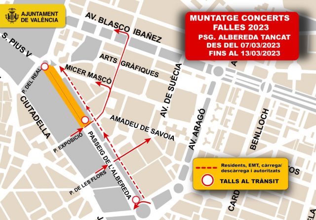 Conciertos de Fallas Amstel Los días 10 y 11 de marzo, Valencia vibrará con los conciertos de Fallas ¿Cuándo? Fecha Del Friday, 10 de March del 2023 al Saturday, 11 de March del 2023 HORA 18:30 h ¿Dónde? LUGAR Jardines de Viveros Calle Botánico Cavanilles 10 Ver ficha Amstel quiere que toda la ciudad pueda disfrutar de una gran experiencia estas Fallas 2023 y por eso patrocina los Conciertos de Fallas 2023. Un concierto gratuito que cuenta con un aforo máximo de 15.000 personas. 10.000 entradas se podrán conseguir con Amstel y el Ayuntamiento de València sorteará 5.000 entradas. Los Conciertos de Fallas se celebrarán el viernes 10 y sábado 11 de marzo en los Jardines de Viveros. Un gran concierto gratuito con un cartel a la altura de las grandes fiestas locales. En marzo la ciudad se viste para celebrar las fallas. Consulta nuestra agenda para no perderte los actos más importantes y no pierdas el programa de las Fallas 2023. Esta gran cita musical quiere conectar con los jóvenes, falleros de casal y los que disfrutan de la ciudad y sus fiestas desde la calle, para que puedan vibrar en directo con un cartel de artistas muy especial. Además de poder disfrutar de la música, habrá foodtrucks en el recinto del concierto. Horario de los Conciertos de Fallas 2023 Viernes 10 de marzo 18:30h – Prod DJ (Tania Bayo, Marien Bal) 20:45h – La Habitación Roja 21:45h – Fat Gordon 22:15h – Miss Caffeina 23:30h – La Lusi 00:00h – Nancys Rubias 00:45h – Fangoria 02:15h – Ximo Bayo DJ 03:30h – Fin Sábado 11 de marzo 18:00h – Prod DJ (Salva Gómez) 20:30h – Colomet 21:45h – Pupil·els 22:30h – Nonai Sound DJ 23:00h – Zoo 00:30h – Lauder DJ 01:00h – La Fúmiga 02:15h – Carlos Areces & Aníbal Gómez DJ 03:30h – Fin Calles cortadas por los Conciertos de Fallas 2023 Con motivo de los Conciertos de Fallas, habrá calles cortadas los días previos. El Ayuntamiento de Valenci ha comunicado que del 7 al 13 de marzo el Paseo de la Alameda está cerrrado para su circulación entre la Plaza Zaragoza y el Puente del Real. La vía de servicio estará abierta unicamente para residentes, transporte público, carga y descarga y vehículos autorizados. *Los puentes transversales estarán abiertos. ¿Cómo conseguir entradas para el concierto de Amstel? Este año hay dos formas de conseguir tu entrada gratuita para el concierto de Fallas. 1. Consigue tu entrada en los bares 1. Pide Amstel y acumula 2 pincodes 2. Introdúcelos en esta web en la sección ‘Vengo del bar’ 3. Completa el formulario y elige el día: 10 o 11 de marzo 4. Descarga tu entrada. 2. Consigue tu entrada en el supermercado 1. Compra 6€ de productos Amstel 2. Introduce tu ticket de compra en esta web en la sección ‘Vengo del súper’ 3. Completa el formulario y elige el día: 10 o 11 de marzo 4. Recibirás tu entrada en el mail. Además puedes conseguir tu pañuelo fallero de Amstel por 6€ más. *Las entrada para el concierto de Fallas Amstel están agotadas. Artículos relacionados Fallas 2025 Programa pirotécnico Fallas 2020 Exposición del Ninot 2025 Escape room en València