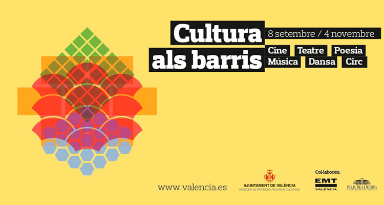‘Cultura als barris’ en Valencia Cultura als barris vuelve con el objetivo de dinamizar la vida cultural en los barrios de Valencia ¿Cuándo? Fecha Del Saturday, 27 de October del 2018 al Sunday, 04 de November del 2018 HORA 12:00 h ¿Dónde? LUGAR Valencia Valencia Ver ficha La cultura en Valencia tiene mucho que decir a lo largo de este otoño. Nuestra agenda de Valencia acoge, otro año más, la propuesta de ‘Cultura als barris’ una cita imprescindible que tendrá lugar del 8 de septiembre al 4 de noviembre en diversos barrios de Valencia. Cine, teatro o exposiciones se juntan para ofrecer a todos los habitantes de la ciudad los mejores eventos gratuitos en Valencia. Un proyecto que pretende descentralizar la cultura a los barrios de la ciudad. ‘Cultura als barris’ tiene como objetivo dinamizar la vida cultural de los barrios valencianos con menos oferta en esta materia, distritos que en su mayoría no cuentan con actos culturales de manera regular y que se quieren situar a la cabeza de la lista. Con ello, la finalidad de esta iniciativa es que salir por Valencia sea mucho más que visitar los lugares chics de la ciudad; descentralizar la cultura a los barrios de la ciudad. Una propuesta que viene a pretender, a fin de cuentas, democratizar el acceso a la cultura y fomentar la creación de nuevos públicos. La programación de ‘Cultura als barris’ en esta segunda edición contará con diferentes actividades que se suman a nuestra agenda de teatro en Valencia, las exposiciones más interesantes, exhibiciones de poesía y otras disciplinas artísticas que serán las protagonistas de los espectáculos gratuitos. Además se realizarán actividades para niños en Valencia de manera regular. Los barrios participantes en esta segunda edición de ‘Cultura als barris’ son: Campanar, Vara de Quart, Tres forques, Benicalap, Soternes, Trinitat, Orriols, Sant Marcel·li,La Raïosa, Nazaret, Campanar, Malilla y Arrancapins. 10 barrios en los que durante dos meses se llenarán de cultura. Circo, cine, música clásica, juegos populares, talleres, teatro, magia, títeres, danza, cuentacuentos, animación infantil… Todas estas son sólo algunas de las actividades gratuitas en Valencia que se podrán realizar gracias a las compañías y entidades participantes que congregarán a profesionales trabajando por la cultura en los barrios valencianos. Si no sabes saber qué hacer en Valencia, no busques excusas y disfruta de ‘Cultura als barris’. Para conocer todos los detalles de ‘Cultura als barris’, consulta la programación completa: Artículos relacionados Agenda de eventos gratuitos en Valencia Ciclo de conciertos en la pérgola de La Marina Feria del sector fallero en Mercado de Tapinería Truenorayo Fest 2017 en Valencia