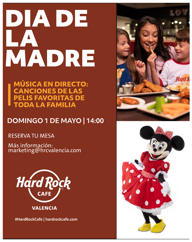 Día de la Madre en Hard Rock Cafe Valencia Pasa un día de la Madre por todo lo alto con el plan que tiene Hard Rock Cafe ¿Cuándo? Fecha Del Sunday, 01 de May del 2022 al Sunday, 01 de May del 2022 HORA 13:00 h ¿Dónde? LUGAR Hard Rock Cafe Valencia Avenida Del Marqués de Sotelo 6 46002 Valencia Ver ficha El domingo 1 de mayo celebramos el Día de la Madre, y Hard Rock Cafe tiene un plan si lo que buscas es pasarla bien o dar a una madre un regalo inesperado y muy entretenido. El día familiar ideal para disfrutar de una comida al son de las canciones favoritas de toda la familia. Si quieres entretenerte con muchos y diversos planes de ocio mira nuestra agenda de eventos. Música en directo para amenizar ese día tan especial con un repertorio que no dejará indiferente a ningún miembro de la familia, canciones de todas las pelis de animación favoritas con las que han crecido generaciones. Además, con sorpresa incluida para todas las mamás! Para reservar o recibir más información escribe a [email protected] o por whatsapp 747 860 910. Artículos relacionados Un día en la Albufera Planes top para esta primavera en València Boleras en Valencia