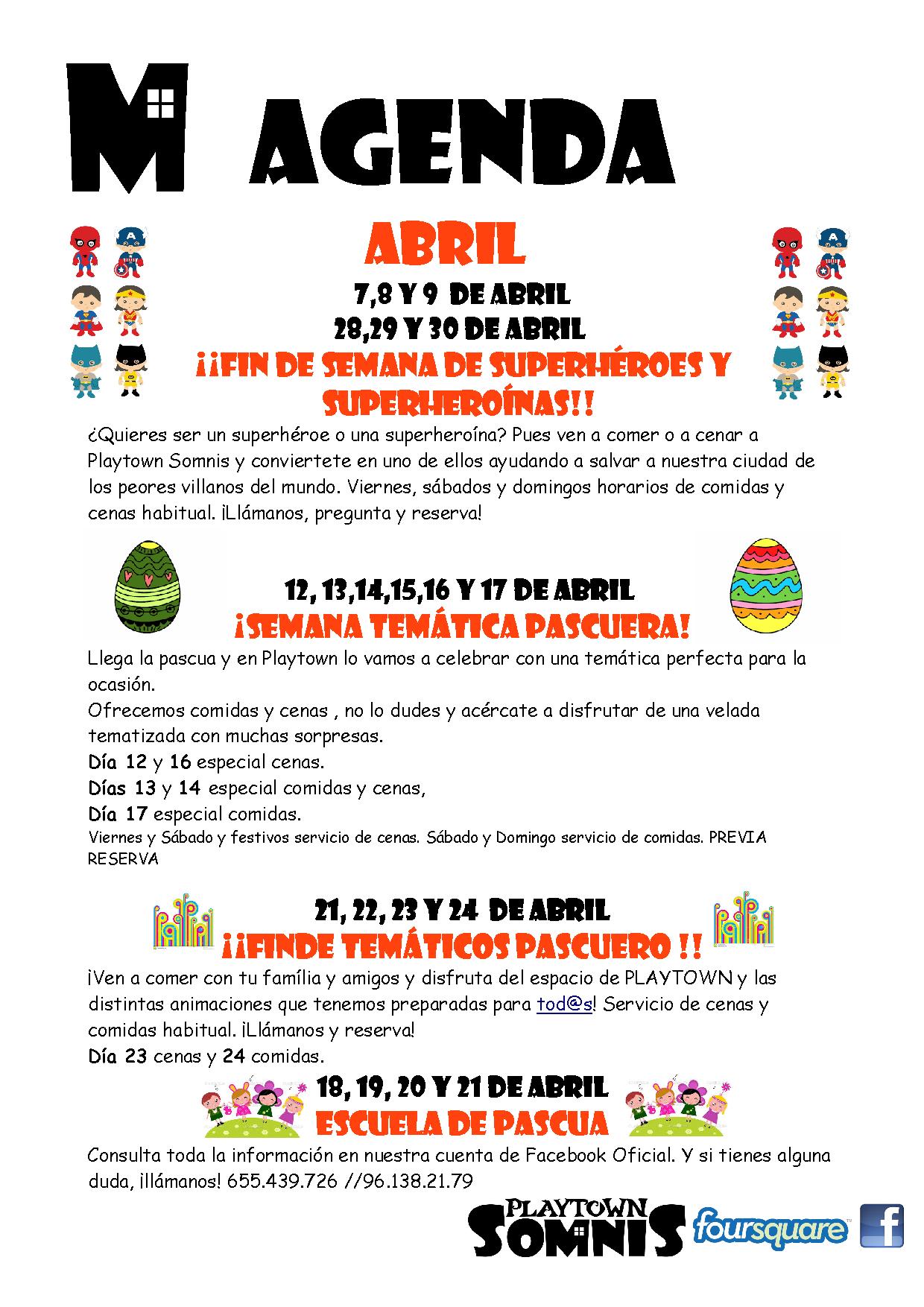 Días de Superhéroes en Valencia Los días 7, 8, 9, 28, 29 y 30 de abril Playtwon Somnis se convertirá en un espacio donde los más peques serán superhéroes ¿Cuándo? Fecha Del Friday, 28 de April del 2017 al Sunday, 30 de April del 2017 HORA 12:00 h ¿Dónde? LUGAR Playtown Somnis Plaça Dos de Maig, núm. 3 Ver ficha Playtown Somnis ha organizado diversas actividades para que pases un mes de abril único. Este local en Valencia ofrece restauración y ocio para toda la familia a partes iguales: los padres podréis degustar una rica comida mientras los peques se divierten jugando con la extensa oferta de ocio que siempre ofrece Playtown Somnis. Para consultar más planes con niños en Valencia consulta nuestra agenda de Valencia. Los niños nunca están desatendidos, pues los animadores de Playtown estarán a su lado para que la experiencia sea, si cabe, más divertida. La temática escogida por Playtown Somnis para el primer fin de semana de abril y el último de abril es el heroísmo. Durante los días 7, 8 y 9 de abril y los días 28, 29 y 30 de abril, este local de ocio infantil en Valencia se convierte en un espacio de héroes y heroínas. Los más peques se convierten en uno de estos personajes, durante unos días, para salvar el mundo de villanos. Las comidas y las cenas estarán ambientas según esta temática y las actividades lúdicas de Playtown Somnis se enfocarán en recrear un escenario heroico. Mientras, los padres pueden disfrutar de las comidas y cenas especiales que ofrece Playtown Somnis. Este local es la solución perfecta para que los peques y sus padres disfruten al máximo. Echa un vistazo a su agenda para el mes de abril. No sólo ofrece estos días temáticos tan especiales, también ha organizado una escuela de pascua para estas vacaciones de Semana Santa en Valencia. Haz tu reserva para comer o cenar el fin de semana llamando a 961 382 179//655 439 726 o enviando un correo a [email protected] Artículos relacionados Eventos en Valencia Dónde celebrar cumpleaños con niños en València Gran Feria Andaluza en Valencia 2023 Planes con niños al aire libre en Valencia