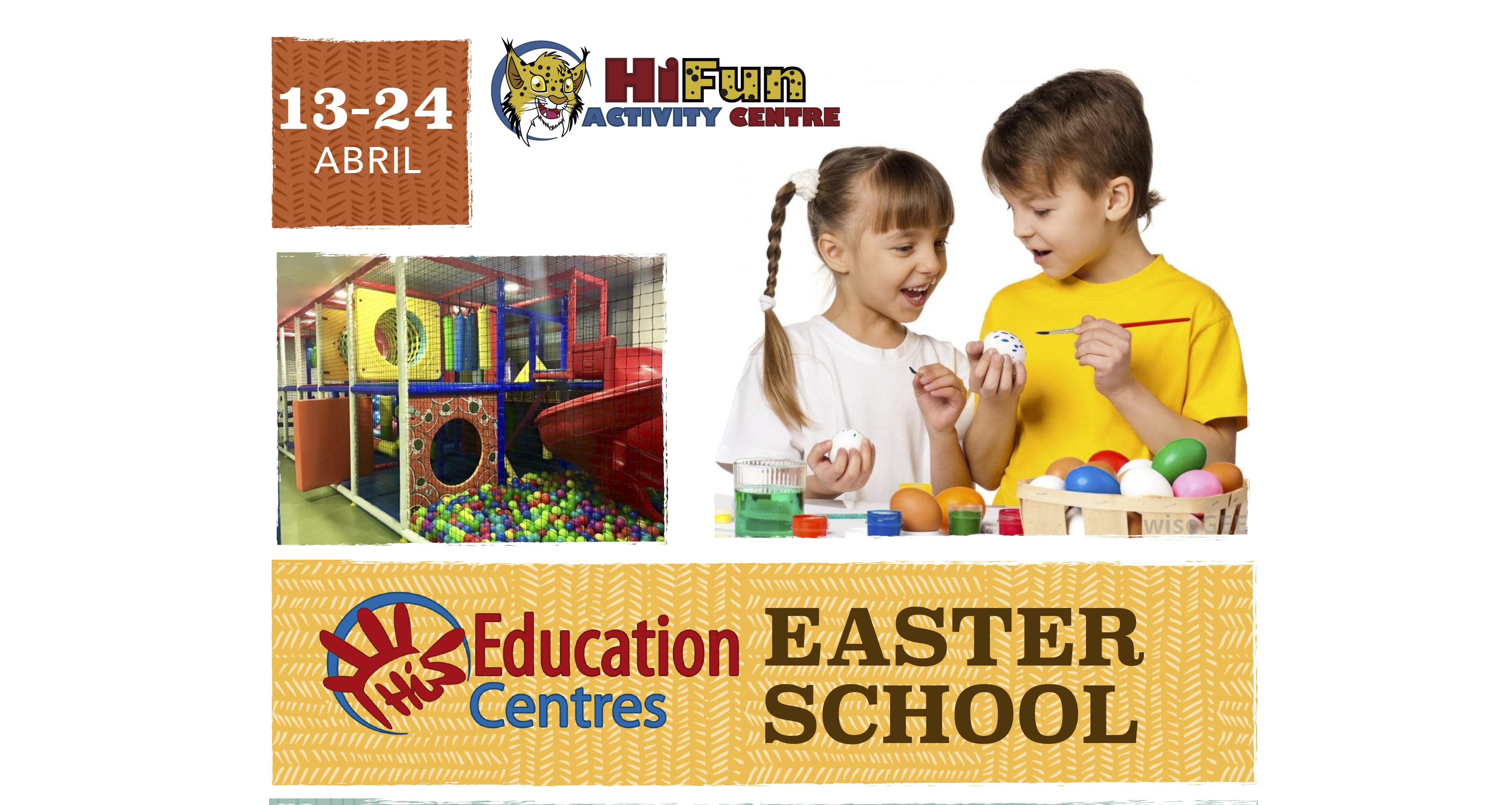 Del 13 al 24 de abril se habilitará la escuela de pascua en inglés Easter school para los peques: habrá talleres de cocina de monas de pascua, easter eggs escondidos por todo el recinto aguardando a ser encontrados y como no, diversión en el parque de bolas de HiFun.