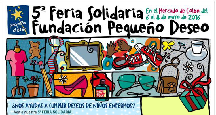 La Fundación Pequeño Deseo organiza los días 6, 7 y 8 de mayo en el Mercado de Colón de Valencia, su V Feria Solidaria con el fin de recaudar fondos para poder seguir cumpliendo los deseos de niños enfermos. El viernes y el sábado estarán presentes de 11:00 a 20:30 horas y el domingo de 11:00 a 18:00 horas. No te pierdas ningún evento en Valencia.