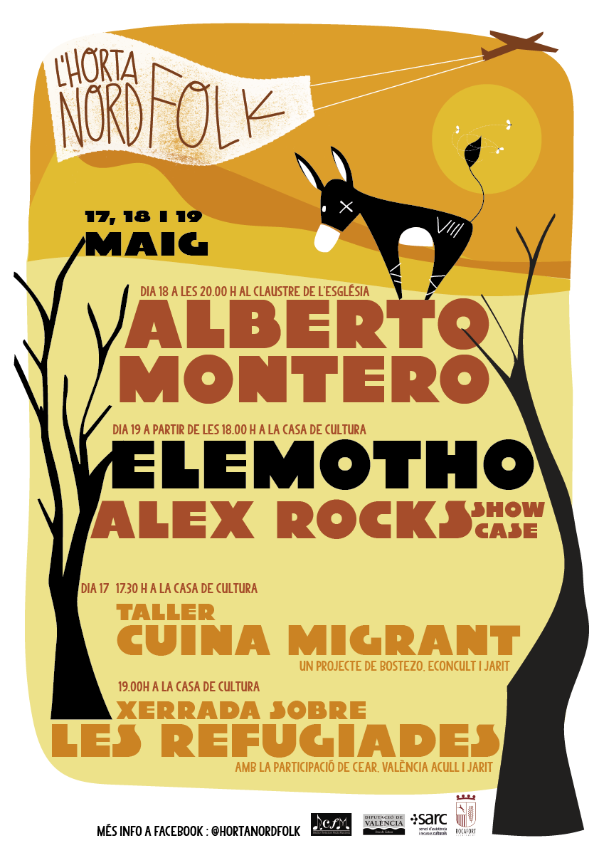 Festival Horta Nord Folk en Rocafort El Horta Nord Folk contará con intérpretes como Alberto Montero, Alex Rocks y Elemotho además de una mesa redonda en la que se hablará sobre la situación de las personas refugiadas ¿Cuándo? Fecha Del Thursday, 17 de May del 2018 al Saturday, 19 de May del 2018 HORA 17:30 h ¿Dónde? LUGAR Rocafort C/ Carrer del Pou, s/n Ver ficha La séptima edición del festival Horta Nord Folk será del 17 al 19 mayo en Rocafort. Contará con sonidos mediterráneos, folk, pop y música variada. Si quieres conocer más eventos visita nuestra agenda y si te encantan los festivales acude a nuestra agenda de fiestas y festivales. El evento, organizado por la concejalía de Cultura, lo encabeza Alberto Montero que presentará su último trabajo ‘La Cataedral Sumergida’. El artista mezcla la psicodelia, el folk y la música popular latinoamericana. Es un referente en la música alternativa actual. Namibia Elemotho también será uno de los protagonistas del festival ya que sus canciones han llegado a series de Netflix como Grace & Frankie. El músico mezcla jazz, percusión africana, reggae, folk y world music. Namibia Elemotho compartirá escenario el sábado con Alex Rocks, DJ y productor que presentará una selección de estilos: hip hop, afro beats, jazz, funk, soul y boogaloo que son perfectos para darlo todo bailando en la pista. Además habrá espacio para la conciencia social, se contará con una mesa redonda sobre refugiados y el derecho de asilo en la que participarán CEAR (Comisión Española de Ayuda al Refugiado), Valencia Acoge y Jarit. En esta reunión se conocerá la realidad a la que se enfrentan diariamente ayudando a las personas refugiadas. Horarios Jueves 17 17:30h Presentación y Taller de cocina. A cargo de Econcult, JARIT y Bostezo. 19:00h Charla #ConLasRefugiadas. Con CEAR, Valencia Acoge y JARIT. Exposición “Refugio Ilustrado. Entre el ataúd y la maleta” de Apiv con la colaboración de IVAJ. Viernes 18 20:00h Alberto Montero. Claustro de la Iglesia de San Sebastián. Sábado 19 18:00h Elemotho y Alex Rocks. Jardines de la Casa de Cultura. Artículos relacionados Festival Big Blast de música electrónica en Mislata Festivales de música en València Festival Cultural Sostenible VESOS 2018 OktoberfestOlé en el Centro Comercial Gran Turia