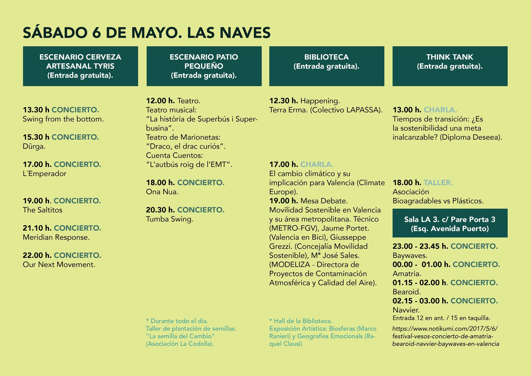 Los días 6 y 7 de mayo se celebrará en el espacio de innovación Las Naves de Valencia el Festival VESOS. La entrada será libre, así como la mayoría de actividades que se realicen; si bien puede que para algunas actividades haya que realizar una pequeña aportación simbólica.