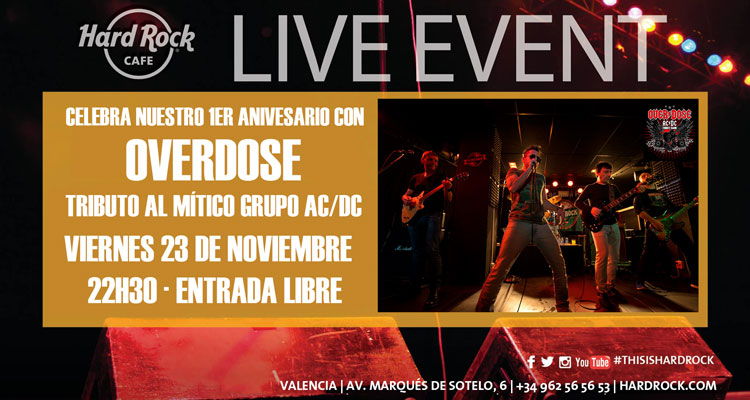 Fiesta de cumpleaños Hard Rock Cafe Valencia Hard Rock Cafe Valencia cumple un año y lo celebran el próximo 23 de noviembre con una fiesta inolvidable. ¡Música en directo, sorteos, promociones y muchas sorpresas! ¿Cuándo? Fecha Del Friday, 23 de November del 2018 al Friday, 23 de November del 2018 HORA 20:00 h ¿Dónde? LUGAR Hard Rock Cafe Valencia Avenida Del Marqués de Sotelo 6 46002 Valencia Ver ficha Hard Rock Cafe celebra su primer aniversario en Valencia y promete ser un fiestón. Así que apunta en tu agenda el próximo viernes 23 de noviembre una cita en el restaurante más rockero de la ciudad. Si quieres conocer más eventos como este consulta nuestra agenda de València, encontrarás gastronomía, conciertos y todos los planes de ocio que se mueven en la ciudad. Una fiesta de cumpleaños con sorteos, promociones especiales, regalos y muchas sorpresas más en una noche de película. Desde las 20:00 hasta las 23:00 habrá un foto-matón para que te hagas fotos con los tuyos y no olvides la gran noche. Pero no olvides venir disfrazado de estrella de rock, será mucho más divertido. Desde las 22:30 a las 00:30 actuará en directo Overdose, la mejor banda tributo a AC/DC. Además, habrá un sorteo de la colección de discos de AC/DC para que te sientas como una verdadera estrella de rock. Y por si fuera poco también se realizarán sorteos donde podrás ganar un vale de 40€ canjeable en el restaurante y una camiseta de Hard Rock Cafe Valencia. Además, si tu cumpleaños es el día 23, ¡estás de suerte! Te regalan un entrante (a excepción del Jumbo Combo) o uno de los deliciosos postres. ¡Será la mejor fiesta de la historia! Vive la experiencia Hard Rock. Reserva ya tu mesa para comer o para cenar enviando un correo a [email protected] o llamando al 962 56 56 53. Artículos relacionados El Flea Market de Valencia Hard Rock Cafe Valencia Hamburgueserías gourmet en Valencia Ciclo de Jazz al Botànic en València