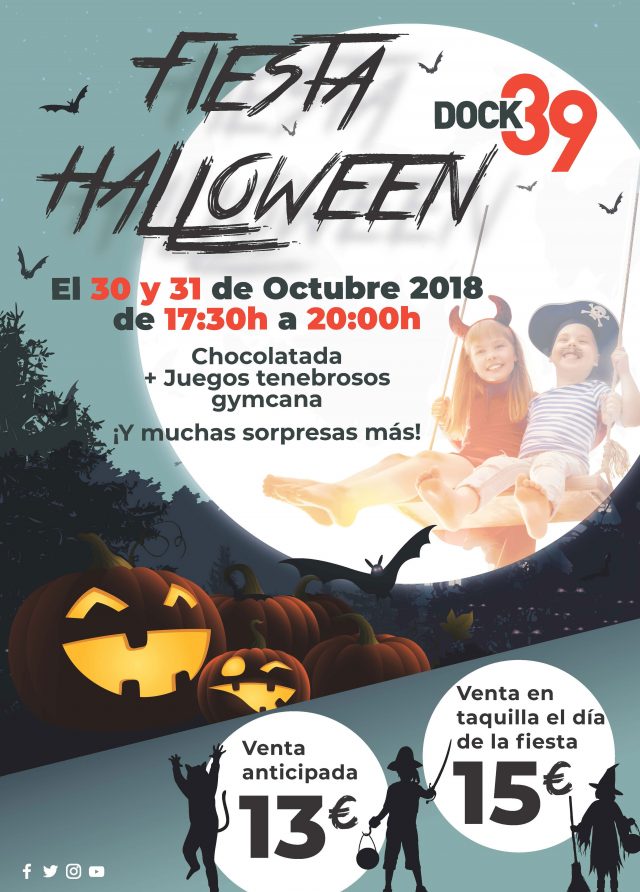 Fiesta de Halloween en Dock39 Celebra la noche de los muertos con toda la familia en una fiesta llena de misterios y sorpresas ¿Cuándo? Fecha Del Tuesday, 30 de October del 2018 al Wednesday, 31 de October del 2018 HORA 17:30 h ¿Dónde? LUGAR Centro Comercial Bonaire Carretera A-3, km 345 - Aldaia Ver ficha Se acerca la noche más terrorífica del año y en Dock39 celebran una gran fiesta de Halloween donde lo pasarás de miedo con toda la familia. Conoce más actividades para hacer con niños en nuestra agenda y este otoño no te quedes sin plan. Los próximos 30 y 31 de octubre, en Dock39 tienen preparada una fiesta temática llena de misterios y actividades. Juegos tenebrosos, actividades para niños y una gran merienda son tan solo algunas de las sorpresas que te esperan en el centro de 17:30 a 20:00h. Dock39 es un espacio lúdico para pequeños y mayores con un sinfín de actividades. Escalada, camas elásticas, juego de escape, parque de bolas y una súper tirolina Zipliiiine con más de 120 metros de recorrido donde podrás descubrir la ciudad desde el cielo. ¿Te lo vas a perder? ¡Ve a recoger tu entrada antes de que se acaben! Precio: Venta anticipada: 13,00 € Venta en taquilla: 15,00 € Dock 39 se encuentra en el Centro Comercial Bonaire, ubicado en la Carretera A3 km 345, 46960 Aldaia, Valencia. Para reservar puedes llamar al 960 619 228 o mandar un correo electrónico a [email protected]. Cartel: Artículos relacionados Halloween en València Visita guiada nocturna en Valencia Qué hacer con niños en València Geronimo Stilton en Teatro Flumen