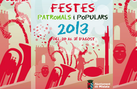 Fiestas de Mislata 2013 El mes de agosto acoge las fiestas patronales de Mislata 2013 ¿Cuándo? Fecha Del Thursday, 01 de August del 2013 al Saturday, 31 de August del 2013 HORA 07:00 h ¿Dónde? LUGAR Mislata Mislata Ver ficha Arrancan las fiestas patronales de Mislata 2013. Durante todo el mes de agosto tienes la oportunidad de acabar el verano de la mejor manera. Concursos de paellas, música en directo, actividades para los más pequeños, concursos de disfraces para todas las edades, mascletá… y mucho más en las fiestas de Mislata 2013. Una de las mejores fiestas de los pueblos de Valencia ¡No te la puedes perder! Programa de las fiestas de Mislata 2013 01 d’agost 12,00h Avís de començament de festa amb volteig de campanes i disparada de trons d’avís. 02 d’agost 7,30h Despertà. 8,30h Missa. 9,00h Xocolatà per a tots els assistents a la missa. 05 d’agost 7,30h Avís de festa tir de trons i volteig de campanes anunciant la vespra de la festivitat del Dia del Santíssim Crist de la Fe. 06 d’agost 7,00h Passetjà del Santíssim Crist de la Fe per distints carrers de la població, acompanyats de la banda de cornetes i tambors de Mislata. En finalitzar, mascletà manual. 8,30h Missa en honor del Santíssim Crist de la Fe, a l’Església dels Àngels. 9,00h Xocolatà. Del 12 al 18 d’agost V Open Internacional Vila de Mislata 21 d’agost 20,00h Passetjà tradicional de la Mare de Déu pels diferents carrers de Mislata. 23,00h Discomòbil a la plaça de la Constitució, amb festa per a tots els públics. 22 d’agost 20,00h Entrà Mora amb el recorregut: Gregori Gea, Miguel Hernández i carrer Major fins la plaça de la Constitució. 23,00h Discomòbil a la plaça de la Constitució, amb festa per a tots els públics. 23 d’agost 23,00h Festival de Bandes de Música a la plaça de la Constitució. Una vegada finalitzat, el públic tindrà accés gratuït a la sala Valentino’s. 24 d’agost 9,00h Jocs infantils a l’avinguda de Gregori Gea, i fins a les 19,00h. 18,00h Xocolatà per als xiquets i xiquetes. 20.00h Concurs de paelles i arrossos a la Plaça de la Constitució, amenitzat per una discomòbil. 23,00h Espectacle de varietés i humor a l’avinguda de Gregori Gea. 25 d’agost 7,00h Despertà i volteig de campanes. 12,00h Missa major a l’Església dels Àngels. 14,30h Mascletà a l’avinguda Gregori Gea. 21,00h Processó. 00,30h Nit d’Albaes a la plaça de la Constitució. 26 d’agost 7,30h Despertà i volteig de campanes. 12,00h Missa major. 14,30h Mascletà a la plaça Major. 18,30h Entrà de la Murta, amb el recorregut tradicional des de l’Església dels Àngels. 21,30h Processó. 27 d’agost 19,00h Inauguració de les casetes de les distintes associacions i inici de les activitats a la plaça Major. 23,00h Orquestra ‘Booster’. 28 d’agost III Concurs de Disfresses per a totes les edats. Inscripció a la plaça Major: Infantils: 17,30h. Majors: 21,00h. 20,00h Cercavila de disfresses per l’avinguda de Gregori Gea. 00,00h Orquestra ‘Primera Plana’. 29 d’agost 23,00h Paella gegant per a 5.000 persones a la Pl. Major. 00,00h Orquestra ‘Stradivarios’. 30 d’agost 22,00h Correfoc des de la plaça de la Constitució fins la plaça Major, per l’avinguda de Gregori Gea. Oferit per la penya L’Estopí. 23,30h Espectacle a la Pl. Major a càrrec de l’orquesta Scream. 31 d’agost 21,00h La nit dels pintxos. Repartiment de 6.000 pintxos moruns al públic. 23,45h Engraellat a càrrec de les penyes Els Tronats i Els Coheters de Santonja, que finalitzarà amb mascletà nocturna de la pirotècnia Gori (Mislata) i Valenciana (Llanera de Ranes). 00,00h Macro discomòbil Jormans. Artículos relacionados La empalmà de la Tomatina 2013 Fiestas en los pueblos de València en verano Fiestas Patronales en Rafelbunyol 2013