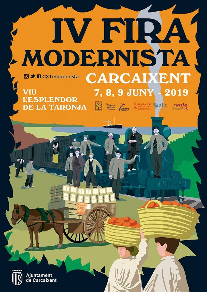 Fira Modernista de Carcaixent Carcaixent celebra la cuarta edición de la Fira Modernista del 7 al 9 de junio con degustaciones, visitas y concursos ¿Cuándo? Fecha Del Friday, 07 de June del 2019 al Sunday, 09 de June del 2019 HORA 10:00 h ¿Dónde? LUGAR Carcaixent Carcaixent Ver ficha Del 7 al 9 de junio se celebra en Carcaixent la cuarta edición de la Fira Modernista. Un acontecimiento único que te permitirá viajar al 1900 en un fin de semana lleno de interesantes propuestas para volver a vivir el esplendor modernista de finales de s.XIX y principios del s.XX. La primavera en Valencia está repleta de eventos, descubre los mejores en nuestra agenda y disfruta del ocio de la ciudad. Esta cuarta edición está dedicada a los medios de transporte y a su importancia en el desarrollo del comercio de la naranja. Esta intención queda reflejada también en el cartel, diseñado por Pau Àlvarez, que ha querido transmitir el viaje de la naranja. La ambientación, las degustaciones gastronómicas, las visitas a los edificios y a los huertos monumentales, las recreaciones históricas, los concursos y el completo programa de actividades nos transportan a ese período histórico de Carcaixent. Un período en el que el municipio vivió, como otras ciudades de València, un etapa especialmente próspera con el cultivo de la naranja como gran motor económico y con el modernismo como movimiento de vanguardia. La Fira Modernista es una iniciativa promovida por el Ayuntamiento que cuenta con la colaboración de entidades, asociaciones, instituciones, empresas y establecimientos de la ciudad, lo que constata el alto grado de dinamismo de la sociedad civil de Carcaixent. Los días 7, 8 y 9 de junio tienes una oportunidad única para viajar en el tiempo y descubrir el potencial modernista que tiene Carcaixent. ¡No te lo puedes perder! Artículos relacionados Primavera en Valencia Gastronomía de Valencia