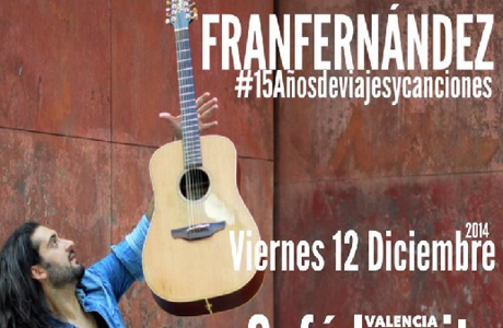 Fran Fernández en concierto Fran Fernández presenta su nuevo trabajo "15 Años de viajes y canciones" ¿Cuándo? Fecha Del Friday, 12 de December del 2014 al Friday, 12 de December del 2014 HORA 22:00 h ¿Dónde? LUGAR Valencia Valencia Ver ficha El Café Juanita de Valencia acoge el concierto de Fran Fernández el viernes 12 de diciembre a las 22:00 horas. Consulta todos los conciertos de Valencia. El cantante Fran Fernández, cuenta con 7 discos, viajes por toda España, Argentina y Chile, siempre de la mano de una guitarra de 11 cuerdas, con influencias del folk americano y de la canción de autor más pura de habla hispana. El nuevo disco de Fran Fernández es un repaso a toda la trayectoria “15 Años de viajes y canciones“, grabado en directo en la Sala Galileo Galilei de Madrid y en el Teatro Isabel la Católica de Granada. Programas como “Para todos La2” de TVE, “La Parroquia del Monaguillo” en Onda Cero, “Hablar por Hablar” de la Cadena SER, “Discópolis” de Radio3 o “Abierto hasta las 2” de RNE ya se han hecho eco de sus canciones. Técnicas innovadoras de guitarra, loops y efectos electrónicos, letras con luz y oscuridad, afinaciones abiertas, voz desgarradora y sensible de un autor autodidacta que se abre camino a través de una música personal y auténtica. ¡No te lo pierdas! Artículos relacionados Otoño Navidad 2024 en Valencia Conciertos Valencia