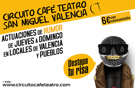 Frescultura Noviembre 2014 Frescultura presenta su programación de actuaciones de noviembre en Valencia ¿Cuándo? Fecha Del Saturday, 01 de November del 2014 al Sunday, 30 de November del 2014 HORA 20:00 h ¿Dónde? LUGAR Valencia Valencia Ver ficha Frescultura programa todo tipo de actuaciones para este mes: monólogos, café-teatro, música, magia, teatro, animación, ambientación, aportando un valor añadido a tus eventos a través del humor y la originalidad. Además crea espectáculos adaptados a las necesidades de cada cliente. Consulta toda la programación de noviembre de 2014 que oferta Frescultura. Centro Cultural La Beneficencia El Centro Cultural La Beneficencia se encuentra en la Calle de la Corona, 36 de Valencia VIERNES 7 – Hora: 23:00 Grupo: DENNY HORROR => “MONOLOGO DE DENNY” VIERNES 14 – Hora: 23:00 Grupo: ROSAMARI PRODUCCIONES => “PECADILLY CIRCUS” VIERNES 21 – Hora: 23:00 Grupo: JUANCHO => “EL QUE NO CORRE VUELA” VIERNES 28 – Hora: 23:00 Grupo: DARIO HUETA => “ MÁAS ALLÁ DE LA RISA” Green Espai Green Espai está localizado en la Calle Fundición 79, Ed Bitacora, local 5, Junto Cine Alucine, Puerto de Sagunto (Valencia) SÁBADO 1 – Hora: 20:00 Grupo: TONI PONS => “SIENTE” SÁBADO 15 – Hora: 20:00 Grupo: JESUS MANZANO => “NO DISPAREN AL GUITARRISTA” SÁBADO 29 – Hora: 20 Grupo: PABLO DE LOS REYES => “PRIMERO ME RÍO Y LUEGO YA VEREMOS” Urban Café El Urban Café se encuentra en la Calle Escultor Antonio Sacramento 13, Valencia SÁBADO 1 – Hora: 24:00 Grupo: DAVID BARRAGAN => “CRETINUS COMICUS” SÁBADO 8 – Hora: 24:00 Grupo: PITER PARDO => “PAREJASJAS” SÁBADO 15 – Hora: 24:00 Grupo: MANU GORRIZ => “ESO ES ASI” SÁBADO 22 – Hora: 24:00 Grupo: JUANCHO => “EL QUE NO CORRE VUELA” SÁBADO 29 – Hora: 24:00 Grupo: OSCAR TRAMOYERES => “LA LISTA DE LA COMPRA” Bar Poliesportiu Massalfassar El Bar Poliesportiu Massalfassar está en la Avda. del novelista Blasco Ibañez, Massalfassar VIERNES 21 – Hora: 21:30 Grupo: JESUS MANZANO => “NO DISPAREN AL GUITARRISTA” Teatro Talía El Teatro Talía está ubicado en la Calle de Caballeros, 31 Valencia SÁBADO 15 – Hora: 23:30 Grupo: TONI PONS => “SIENTE RELOADED” Sala Ventura Alabau La Sala Ventura Alabau se encuentra en la Calle Jose Ma Julian, Aniguo (Edificio Bancaja), Alfafar (Valencia) VIERNES 28 – Hora: 22:30 Grupo: RAFA ALARCÓN => “TEORIA Y PRACTICA DE LIGUE” Carmen de Ronda El Restaurante Carmen de Ronda está ubicado en la Calle Lorca 3, Valencia SÁBADO 22 – Hora: 23:00 Grupo: PITER PARDO => “PAREJASJAS” Artículos relacionados Eventos en Valencia Circuito Café Teatro Noviembre 2014 Monólogos Valencia