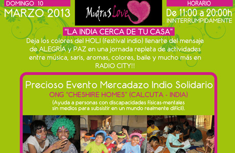 Holy Hindu Evento solidario en Radio City de Valencia Evento solidario en colaboración con la ONG CHESHIRE HOME (Kalcuta, India) ¿Cuándo? Fecha Del Monday, 11 de March del 2013 al Monday, 11 de March del 2013 HORA 11:30 h ¿Dónde? LUGAR Radio City calle Santa Teresa 19 Ver ficha Este domingo 10 de marzo, podrás disfrutar en Radio City de Holy Hindu – Mudra´s Love, un evento en colaboración con la ONG CHESHIRE HOME (Kalcuta, India) cuya labor es el trabajo con personas con discapacidades físicas y /o mentales en un mundo muy duro. Los eventos avalan un proyecto de educación inclusiva para niños. Radio City ha querido unirse a esta iniciativa y durante todo el día podrás disfrutar de diferentes actividades: 11.30 h. Taller especial “India para niñ@s” por la profe Natalia Rodriguez. 13.00 h. BOLLYWOOD DANCE, Actuación de las alumnas de Mina Santapau 18.00 h. TRIBAL FUSSION por el grupo “Confusion Tribal” Todo el día: Mercado de ropa ORIGINAL, complementos, decoración (india -Bali) sponsor de los chicos de la ONG, música, imágenes y mucho más!! Radio City es música y cultura. Es Valencia. Disfruta de los eventos de Valencia con Radio City. Artículos relacionados Radio City Eventos en Valencia Programación de marzo en Radio City 2013
