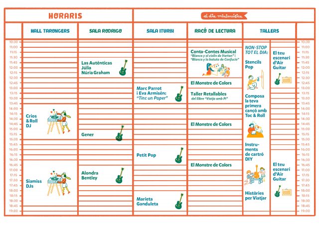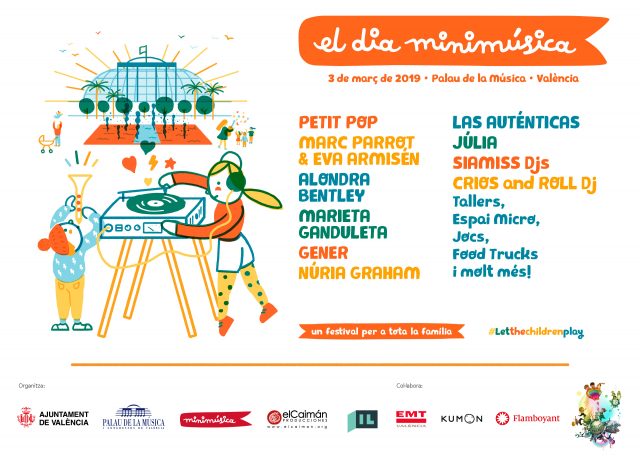 El Día de la Minimúsica El domingo 3 de marzo se celebra 'El dia de la minimúsica', una jornada repleta de juegos y actividades para toda la familia ¿Cuándo? Fecha Del Sunday, 03 de March del 2019 al Sunday, 03 de March del 2019 HORA 10:30 h ¿Dónde? LUGAR Palau de la Música Pº Alameda, 30 Ver ficha El ‘Dia de la Minimúsica‘ llega por segunda vez a València. El Palau de la Música será el escenario de un evento que viene con conciertos, talleres y juegos para disfrutar en familia. Si no sabes qué hacer en València con niños, no dudes en consultar nuestra agenda. El próximo domingo 3 de marzo, entre el bullicio de las Fallas 2019, podréis disfrutar de una jornada que se presenta bajo el lema #letthechildrenplay, que trata de acercar a los más pequeños al mundo de la música. El evento arrancará a las 10:30h y seguirá con actividades hasta las 19h. La entrada será gratuita para niños y niñas de entre 0 y 3 años (solo las 400 primeras). La música la pondrán grupos como Petit Pop, Nuria Graham, Alondra Bentley o Crios & Roll DJ, entre otros. Pero a parte de música, los niños disfrutaran de diferentes talleres y juegos adaptados en función de su edad. En algunos de ellos aprenderán a tocar un instrumento, a componer y grabar su primera canción o a ser más responsables reciclando. También habrán talleres donde se incentive la lectura como el Racó de lectura o Historias para Viajar. Además, Kumon, la mayor red de centros de enseñanza del mundo, también formará parte activa del evento apoyando al Rincón de Lectura y a la presentación del libro de Eva Armisén y Marc Parrot “Tengo un papel”, que tendrá lugar a las 12:45. Cartel: Horarios: Artículos relacionados Agenda de niños en Valencia Fallas con niños Programa de Fallas 2019 Se alquilan balcones para las mascletàs de las Fallas 2023