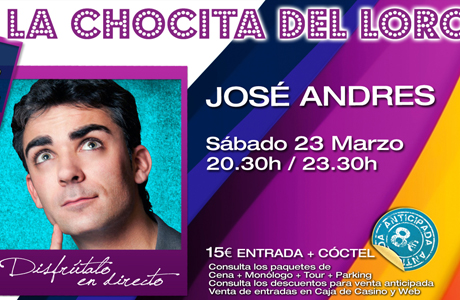 José Andrés en el Casino Cirsa de Valencia Noches de risas en marzo de 2013 en Valencia ¿Cuándo? Fecha Del Saturday, 23 de March del 2013 al Saturday, 23 de March del 2013 HORA 20:30 h ¿Dónde? LUGAR Casino Cirsa Avda. de las Cortes Valencianas, 59 Ver ficha El próximo 23 de marzo de 2013 tendrás la oportunidad de disfrutar de un espectáculo muy especial en el Casino Cirsa de Valencia. José Andrés hará reír al público de Valencia. José Andrés llega al casino para reflexionar en torno a las preocupaciones diarias, las malas noticias a las que nos hemos acostumbrado, transformando en sonrisas realidades tan poco humorísticas como la crisis económica, los mercados, la prima de riesgo e incluso, como él mismo manifiesta, su propia prima. La entrada cuesta 15 euros y el evento empieza a las 20:30 y a las 23:30 horas. Este 2013 los monólogos en Valencia quieren ser mejores que nunca. Además, hay otros muchos eventos en la ciudad que prometen entretenerte. Valencia y el ocio están in love! Artículos relacionados Semana Santa Marinera 2013 La única App con agenda integrada actualizada diariamente de Valencia Concierto de Quique González en Valencia 2013