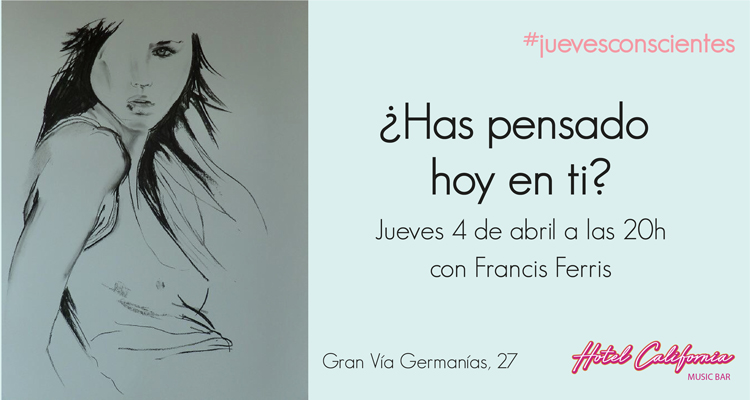Jueves Conscientes en Hotel California Un jueves al mes Hotel California lo dedica al desarrollo personal y al autoconocimiento en forma de talleres, charlas o debates ¿Cuándo? Fecha Del Thursday, 04 de April del 2019 al Thursday, 04 de April del 2019 HORA 20:00 h ¿Dónde? LUGAR Hotel California-Music Bar Gran vía Germanías, 27 Ver ficha Hotel California – Music Bar organiza el jueves 4 de abril a las 20h su #juevesconsciente de la mano de Francis Ferrís Duart. Si aún no tienes planes, te recomendamos visitar la agenda de Valencia hay planes para todos los gustos. Un jueves al mes Hotel California lo dedica al desarrollo personal y al autoconocimiento en forma de talleres, charlas, debates… Un planazo gratuito para aprender a conocerse. El jueves 4 de abril Francis Ferris hará un taller para descubrir cómo nos relacionamos con nosotrxs mismxs. Lo que pensamos y sentimos acerca de nosotrxs está basado en creencias y valores que generan comportamientos que nos colocan en relaciones de maltrato o “buentrato”. A través del cuerpo descubriremos cómo tenemos interiorizado el maltrato. Y aprenderemos a relacionarnos desde el “buentrato”. La entrada es GRATUITA pero se requiere INSCRIPCIÓN para aseguraros asiento. Mandad un privado en el facebook de Hotel California con el número de personas que asistiréis y un teléfono de contacto. Artículos relacionados Primavera en Valencia Mini Tardeo en Delorean 12 ª Guerra de almohadas en Valencia Mostra de Vinos y Alimentos de la Comunidad Valenciana