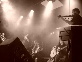 Lochlainn Lochlainn es una formación de folk con un repertorio basado en piezas de composición propia. ¿Cuándo? Fecha Del Friday, 04 de May del 2012 al Friday, 04 de May del 2012 HORA 23:00 h ¿Dónde? LUGAR Café Mercedes Jazz Calle Sueca, 27 Ver ficha VICENTE PORTOLÉS, violín. JOSÉ REDONDO, acordeón, tin whistle, guitarra. JORGE GARCÍA, whistles, low whistles, bodhran. JAVIER IBÁÑEZ, bajo acústico, bouzouki. VICENTE CASTILLA, guitarra. Lochlainn es una formación de carácter folk que desarrolla un repertorio basado eminentemente en piezas de composición propia. Las influencias del folk celta siguen estando presentes en su carácter, pero la evolución de los últimos años le ha llevado a elaborar un sonido propio, con una propuesta directa y contundente que le ha permitido consolidarse como una formación habitual en los diferentes escenarios de música folk. En el verano de 2010 Lochlainn se proclamó vencedor en el I Certamen Folk en la Sierra, en el Festival Internacional de La Sierra (Fregenal, Badajoz). Recientemente participó asimismo en el IV Festival Folkhivern (Sueca) o en el VI Festival de Músicas del Mundo (L’Eliana). Destacable es también su colaboración con Judith Mateo y su banda en el pasado verano de 2010. Actualmente Lochlainn acaba de terminar la grabación de su segundo trabajo, Dim Light. Se trata de ocho piezas originales con gran versatilidad rítmica, que reflejan el entusiasmo y creatividad que el grupo instila en su música.