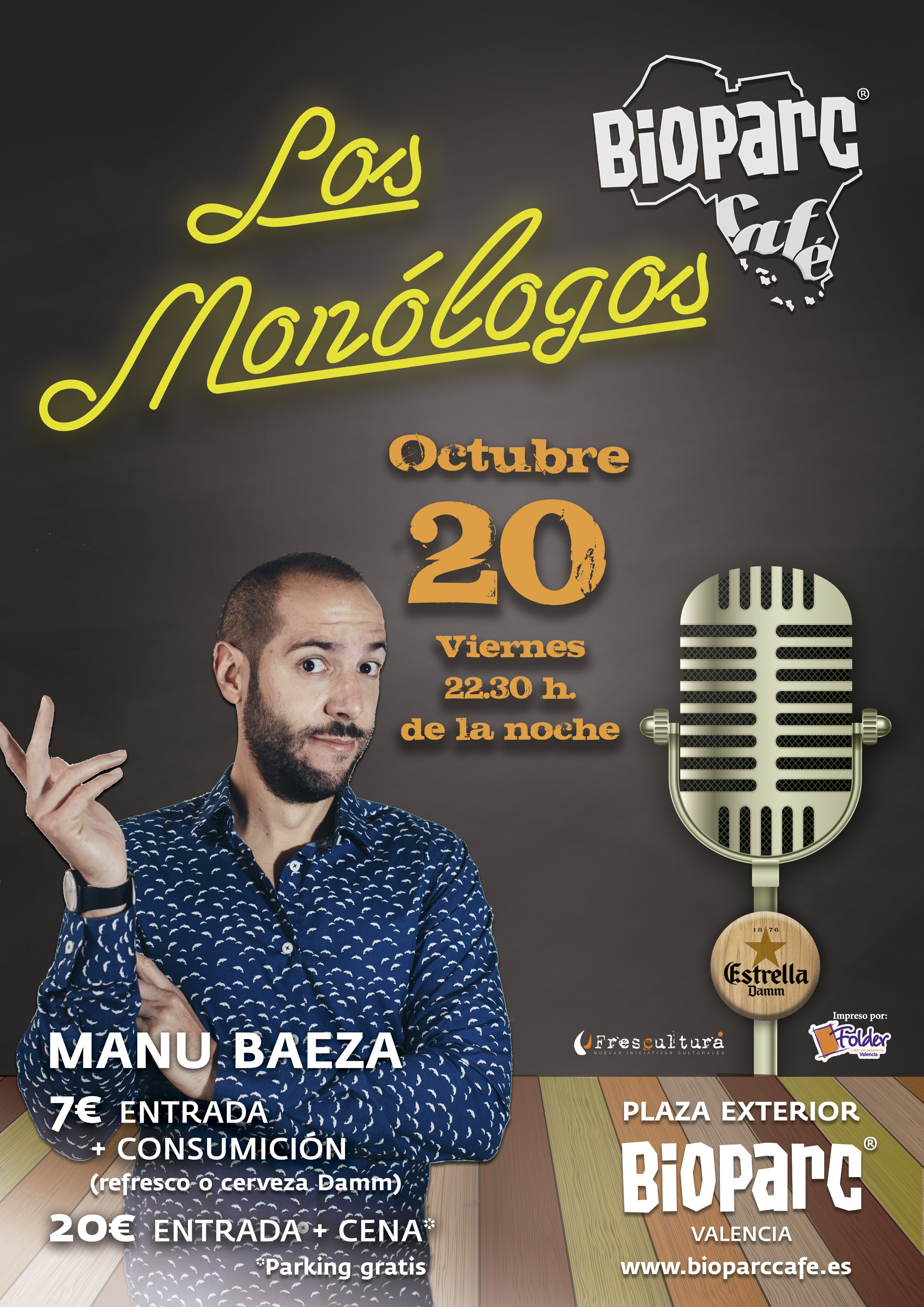 CARTEL MONOLOGO MANU BAEZA EN BIOPARC CAFE VALENCIA