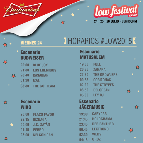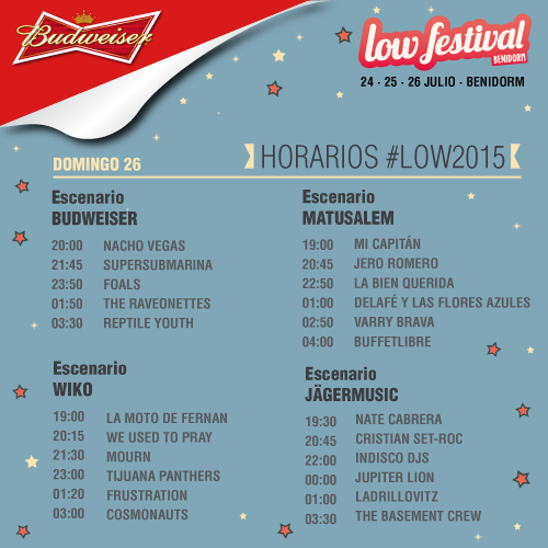 Del 24 al 26 de julio, Low Festival 2015 reunirá a miles de personas dispuestas a pasar un fin de semana de fiesta con los mejores grupos y dj’s dentro del panorama nacional e internacional, como Kasabian o Foals.