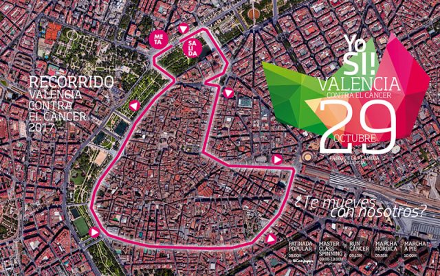 Marcha contra el cáncer en Valencia València se suma a la lucha contra el cáncer el 29 de octubre con diversas actividades deportivas enmarcadas dentro de Run-Cáncer. ¡Participa! ¿Cuándo? Fecha Del Sunday, 29 de October del 2017 al Sunday, 29 de October del 2017 HORA 09:15 h ¿Dónde? LUGAR Paseo de la Alameda Paseo de la Alameda Ver ficha València se suma a la lucha contra el cáncer con una nueva edición de València contra el cáncer que se enmarca dentro de Run-cancer uno de los circuitos solidarios más grandes de Europa que incluye más de 60 pruebas en localidades de toda la provincia. Este evento deportivo se celebra el domingo 29 de octubre en el Paseo de la Alameda. Un plan estupendo para poner en marcha este otoño en clave solidaria. No te pierdas ningún evento en Valencia consultando nuestra agenda. Valencia se vuelva con la causa celebrando diversas actividades deportivas el 29 de octubre: running, marcha o patinaje con el objetivo de concienciar a la población de los efectos de esta enfermedad así como las posibilidades para colaborar con los enfermos. Esta cita se suma a la lista de carreras populares 2017 en Valencia. Programación La programación prevista para la iniciativa Valencia contra el cáncer alberga 5 pruebas deportivas pensadas para todos los públicos: Patinada popular no competitiva (5.000 m.): domingo, 29 de octubre de 2017, a las 09:00h. Carrera Run Cancer (5.000 m.): domingo, 29 de octubre de 2017, a las 09:15h. Marcha Nórdica (5.000 m.): domingo, 29 de octubre de 2017, a las 09:55h. Marcha a pie no competitiva (5.000 m.): domingo, 29 de octubre de 2017, a las 10:00h. Además, habrá una Master Class de Spinning, realizada en colaboración con Bestcycling, de 9:00 a 13:00 horas. Todas estas pruebas partirán desde el Paseo de la Alameda de Valencia. Inscripciones carrera contra el cáncer Puedes inscribirte a las actividades a través de www.toprun.es y a través de la página www.valenciacontraelcancer.com, hasta el jueves, 26 de octubre de 2017, a las 23:59h. Para la carrera de running, la marcha popular y la marcha nórdica será necesario realizar una aportación de 5€ mientras que la inscripción a la patinada tiene una aportación de 3€. Podrás recoger tus dorsales y camisetas en el Palacio de Congresos de Valencia (avenida de les Corts Valencianes, 60), viernes 27 y sábado 28 de octubre, de 10 a 20 horas. Si no sabes que hacer un domingo en Valencia, no te lo pienses más y ¡súmate a la lucha! Recorrido Valencia contra el Cáncer Artículos relacionados Otoño Marcha Ciudad de Valencia 2017 Hacer deporte en Valencia 5ª Can-rrera solidaria en Bioparc Deporte Agenda de Deporte en Valencia