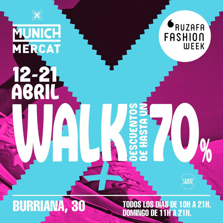 Del 12 al 21 de abril llega una nueva edición de Munich Mercat. Un evento de entrada gratuita con grandes ofertas de zapatillas Munich. Si no sabes qué hacer en Valencia un fin de semana, consulta nuestra agenda mensual donde podrás encontrar más eventos en Valencia de moda, como este.