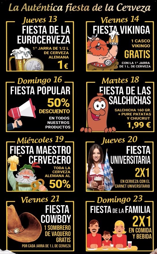 • Jueves 13 de septiembre – Eurocerveza: primera jarra de cerveza de medio litro a 1€.