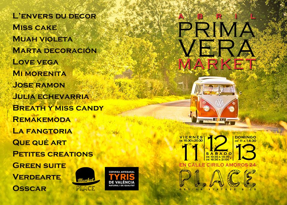 Primavera Market Un market con las últimas tendencias en mobiliario, moda, diseño y complementos ¿Cuándo? Fecha Del Friday, 11 de April del 2014 al Sunday, 13 de April del 2014 HORA 00:00 h ¿Dónde? LUGAR Valencia Valencia Ver ficha Desde el espacio PLACE Design Vintage & Co, en calle Cirilo Amorós número 24, se presenta el Primavera Market, los días 11, 12 y 13 de abril. Se trata de un multiespacio en el que se celebra un Mercado de moda, tendencias y estilo vintage; que aúna todo tipo de elementos a la venta: decoración, moda, complementos, y las últimas debilidades culinarias; los cup cakes. En esta ocasión el PLACE Desing Vintage & Co, ha traído una selección de mobiliario vintage desde París, de la mano de “L’envers du decor”, también contarán con las preciosas mesas auxiliares de “Julia Echevarria”. Para la decoración del hogar, “Verdearte” propone: plantas sin maceta, y desde “La Fangtoria” nos muestran la cerámica mas actual. Las últimas novedades de la moda en Valencia, estarán muy presentes en el Primavera Market con “Remake Moda” que realiza diseños exlusivos de ropa y accesorios. En el Primavera Market , se pueden encontrar bolsos confeccionados con mimo con telas seleccionadas de “Petites creations” entre otros. Los complementos de mujer, estarán presentes de la mano de la firma”Muah Violeta” nos enamorará con sus tocados florales, muy de moda esta primavera 2014. Así como “Que qué Art” collares de cordón, creados por Veronica Pulido Blasco. La moda de Valencia más actual la traen marcas como: “Osscar”, “Love Vega”, “Mi morenita”. Los complementos para hombre, también tienen su hueco PLACE Design Vintage & Co; donde los chicos van a encontrar un gran número de opciones para combinar esta primavera; desde pajaritas confeccionada a mano por “Sebastian Chavarriaga”; a una gran selección de piezas de plata de la marca “Breath”. El toque dulce del Primavera Market, lo pondrá “Miss Cake” con sus deliciosos cup cakes. *Todo el que realice cualquier compra en el Primavera Market, entrará en el sorteo de un lote compuesto por productos de todos los expositores. Horario: Viernes 11 de abril De 16:30 a 20:00. Inauguración con piscolabis. Sábado 12 de abril De 10:30 a 14:30 De 16:30 a 21:00 Domingo 13 de abril De 11 a 14:30 Expositores *Una oportunidad para disfrutar de las originales tiendas de Valencia. Artículos relacionados Primavera en Valencia