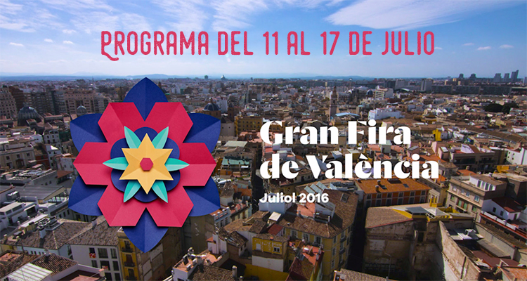Programa Feria de Julio del 11 al 17 de julio Consulta todo lo que la Gran Fira de València tiene preparado para la segunda semana de julio ¿Cuándo? Fecha Del Monday, 11 de July del 2016 al Sunday, 17 de July del 2016 HORA 09:00 h ¿Dónde? LUGAR Valencia Valencia Ver ficha La Gran Fira de València afronta su segunda semana repleta de eventos. Sin duda es una gran alternativa en nuestras agendas este verano en Valencia pues cientos de actividades se celebran en la ciudad durante este mes de julio. El programa de la Feria de Julio no te deja opción al aburrimiento ¡el ocio en Valencia está más que asegurado! Desde los míticos conciertos de Viveros hasta el festival de pirotécnia de la feria de julio; música, danza, humor, exposiciones y un sinfín de actividades. A continuación te presentamos el programa de actividades de la Feria de Julio de Valencia para esta segunda semana de julio, del día 11 al 17. ¡Échale un vistazo! Programa Feria de Julio de Valencia Del lunes 11 al domingo 17 de julio de 2016 Lunes 11 de Julio, 2016 Els Frikis i la Xata Merenguera. Música infantil Información de la actividad Inicio 11 Juliol, 2016 8:00pm Lugar Jardines del Palau Sur Campionats de Truc i Parxís Información de la actividad Inicio 11 Juliol, 2016 9:00pm Lugar Jardines del Palau Sur Chao Chochín. Espectacle de varietés per a majors de 18 anys Información de la actividad Inicio 11 Juliol, 2016 9:30pm Dirección Plaça del Col·legi del Patriarca, València, Valencia, España Lugar Plaza del Patriarca Cinema a l’Aire Lliure. La comèdia (en) cantada. El otro lado de la cama Información de la actividad Inicio 11 Juliol, 2016 9:45pm Lugar MUVIM The Troupers. Tribut a Abba Información de la actividad Inicio 11 Juliol, 2016 10:00pm Lugar Jardines del Palau Martes 12 de Julio, 2016 El Gran Ball de la Fira. Duo Brillantina Información de la actividad Inicio 12 Juliol, 2016 7:00pm Lugar Jardines del Palau Campionat de la Fallera Calavera Información de la actividad Inicio 12 Juliol, 2016 7:00pm Lugar Jardines del Palau Sur Nits de l’Hemisfèric, preu 8,80€ Información de la actividad Inicio 12 Juliol, 2016 9:00pm Dirección Av. del Professor López Piñero, 7, 46023 València, Valencia, España Lugar Ciudad de Las Artes y Las Ciencias Cinema a l’Aire Lliure. La comèdia (en) cantada. Los paraguas de Cherburgo. Información de la actividad Inicio 12 Juliol, 2016 9:45pm Lugar MUVIM Nits de l’Hemisfèric, preu 8,80€ Información de la actividad Inicio 12 Juliol, 2016 9:45pm Lugar MUVIM Nit de varietés en homenatge a Vicente Ramírez, amb Julita Díaz, Rosita Amores i Paco Calonge Información de la actividad Inicio 12 Juliol, 2016 10:00pm Lugar Jardines del Palau Norte Miércoles 13 de Julio, 2016 Campionats de Truc i Parxís Información de la actividad Inicio 13 Juliol, 2016 9:00pm Lugar Jardines del Palau Sur Cinema a l’Aire Lliure. La comèdia (en) cantada. Golfus de Roma Información de la actividad Inicio 13 Juliol, 2016 9:45pm Lugar MUVIM Babalu Swing Band Información de la actividad Inicio 13 Juliol, 2016 10:00pm Lugar Jardines del Palau Norte Conciertos de Viveros Concierto Chambao en Valencia Información de la actividad Inicio 13 de juliol, 2016 20:30 pm Jueves 14 de Julio, 2016 Campionat de la Fallera Calavera Información de la actividad Inicio 14 Juliol, 2016 7:00pm Lugar Jardines del Palau Sur Tasta la Fira (pintxo i canya) Información de la actividad Inicio 14 Juliol, 2016 8:00pm Lugar Jardines del Palau Norte Campionat de Trivialència Información de la actividad Inicio 14 Juliol, 2016 8:00pm Dirección Plaça de Patraix, 46018 València, Valencia, España Lugar Plaza Patraix Nits de l’Hemisfèric, preu 18 € Información de la actividad Inicio 14 Juliol, 2016 9:00pm Dirección Av. del Professor López Piñero, 7, 46023 València, Valencia, España Lugar Ciudad de Las Artes y Las Ciencias Cine karaoke: Rocky Horror Picture Show Información de la actividad Inicio 14 Juliol, 2016 9:30pm Lugar Plaza Ayuntamiento Cinema a l’Aire Lliure. La comèdia (en) cantada. On connait la chanson Información de la actividad Inicio 14 Juliol, 2016 9:45pm Lugar MUVIM Cinema a la platja Información de la actividad Inicio 14 Juliol, 2016 10:00pm Lugar Platja del Cabanyal Nits del Museu. Monòlegs Preus de 8 a 12 €. Información de la actividad Inicio 14 Juliol, 2016 10:00pm Dirección Av. del Professor López Piñero, 7, 46023 València, Valencia, España Lugar Ciudad de Las Artes y Las Ciencias El virgo de Visanteta (+18 anys) Información de la actividad Inicio 14 Juliol, 2016 10:00pm Lugar Jardines del Palau Norte Chimo Bayo + DJ Sento Información de la actividad Inicio 14 Juliol, 2016 11:00pm Lugar La Marina Real Viernes 15 de Julio, 2016 Nuel Galán. Màgia familiar Información de la actividad Inicio 15 Juliol, 2016 8:00pm Dirección Plaça de l’Església, 46015 València, Valencia, España Lugar Plaza Campanar Preseleccions Russafa A Información de la actividad Inicio 15 Juliol, 2016 10:00pm Lugar Jardines del Palau Sur Preseleccions Pla del Real i Benimaclet Información de la actividad Inicio 15 Juliol, 2016 10:00pm Lugar Jardines del Palau Norte Cine karaoke: Moulin Rouge Información de la actividad Inicio 15 Juliol, 2016 10:00pm Lugar Plaza Ayuntamiento Nits de Cinema al Claustre de la Nau. King Kong, preu 3 € Información de la actividad Inicio 15 Juliol, 2016 10:00pm Dirección Carrer de la Universitat, 2, 46003 València, Valencia, España Lugar Claustre La Nau Monòlegs In Love i Mónica Oliva (Música) Información de la actividad Inicio 15 Juliol, 2016 10:00pm Dirección Plaça de l’Església, 46015 València, Valencia, España Lugar Plaza Iglesia Campanar Cant al Ras de la Fira. Cant d’estil nit de versadors Información de la actividad Inicio 15 Juliol, 2016 10:30pm Dirección Plaça del Portal Nou, 46003 Valencia, Valencia, España Lugar Plaça de Portal Nou Conciertos de Viveros Concierto Muchachito Bombo Infierno en Valencia Info