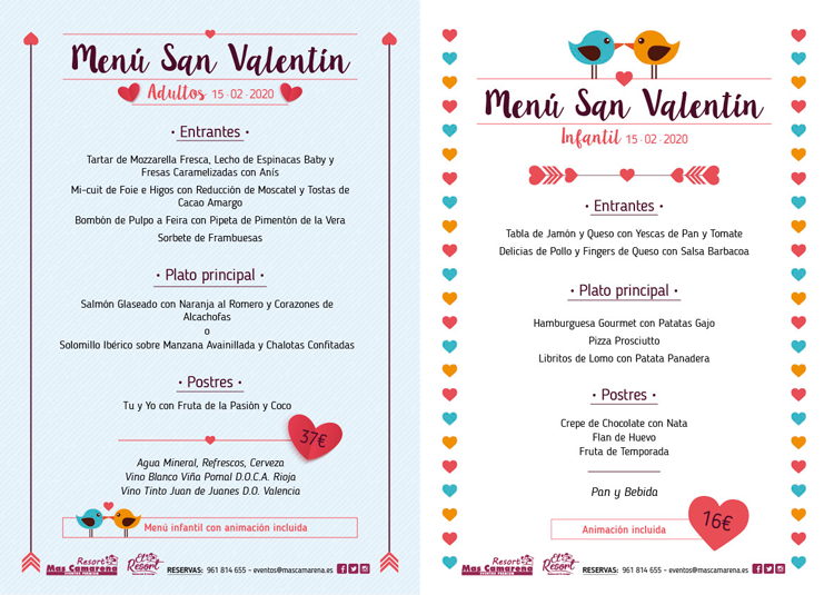 San Valentín en el Resort Mas Camarena Celebra el Día de los Enamorados con una súper cena romántica con música en directo ¿Cuándo? Fecha Del Saturday, 15 de February del 2020 al Saturday, 15 de February del 2020 HORA 21:00 h ¿Dónde? LUGAR Bétera bétera Ver ficha ¿Buscas plan para celebrar San Valentín en València? El Resort Mas Camarena organiza una cena romántica el sábado 15 de febrero a la que además, podrás acudir con los peques de la casa. Si no quieres perderte los mejores planes de ocio de València, consulta nuestra agenda y no te pierdas nada. Para la fiesta más romántica del año han preparado un menú especial acompañado de música y baile con la actuación de la soprano Maria José Bes. La cena estará compuesta por platos nacionales e internacionales como tartar de mozzarella, espinacas y fresas caramelizadas con anís, mi-cuit de foie con reducción de moscatel, salmón glaseado con naranja de romero y corazones de alcachofa y un postre delicioso. Puedes consultar el menú entero al final del post. Pero eso no es todo, los niños también están invitados porque el equipo de animación ha preparado un montón de actividades y además, también disfrutarán de una cena especial con sus platos favoritos. Para más información o reservas, puedes llamar al 961 814 655 o enviar un correo electrónico a: [email protected] El Resort Mas Camarena se encuentra en la urbanización Torre en Conill Norte. Calle Botxí, 6 (Autovía CV-35 Pista de Ademuz – Salida 14) Bétera 46117, València. Menús San Valentín Resort Mas Camarena: Artículos relacionados Exposición del Ninot 2025 Escape room en València Planes románticos en Valencia Escapadas románticas en la Comunidad Valenciana