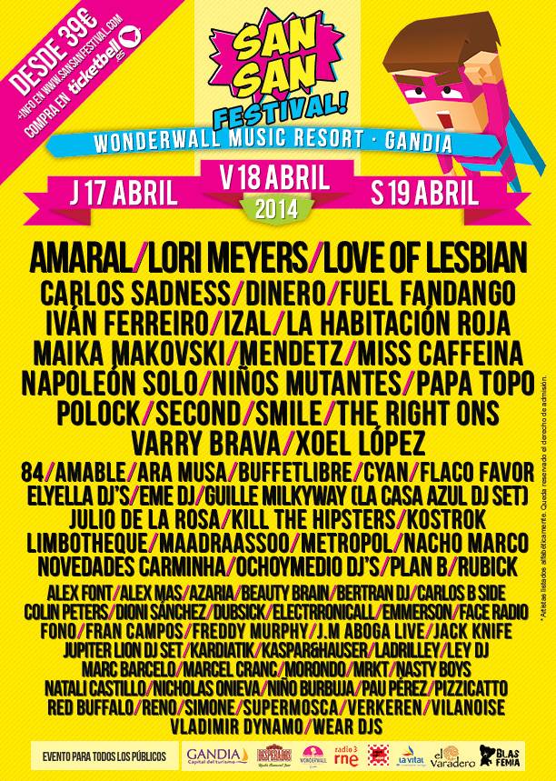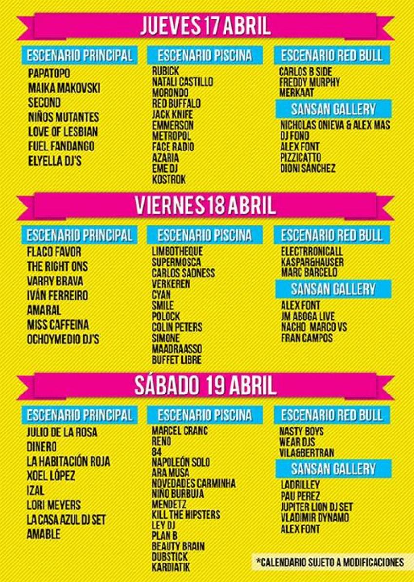 Aunque se trata de un festival novel, su cartel esta cargado de artistas y bandas de renombre. Es el caso Iván Ferreiro, Lori Meyers, Love of Lesbian, Xoel López, etc.