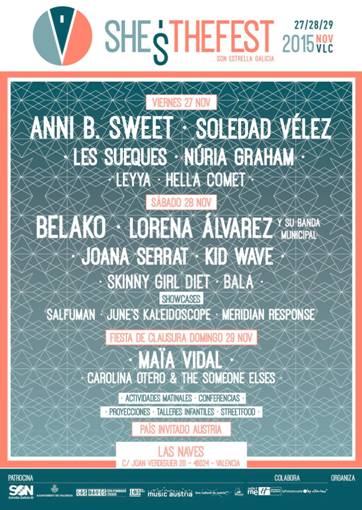 She’s The Fest es un festival de música y creación artística en Valencia que tendrá lugar del 27 al 29 de noviembre en Las Naves. Si no sabes qué hacer en Valencia no lo dudes y consulta nuestra agenda en Valencia para enterarte de todos los conciertos en Valencia.